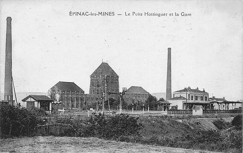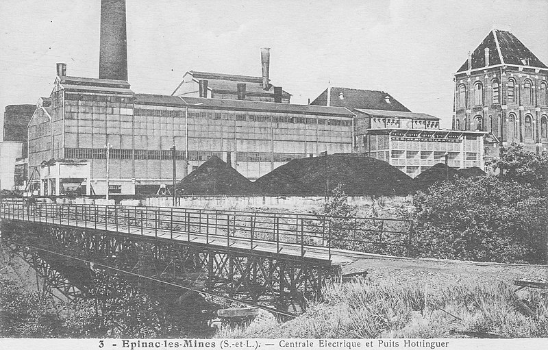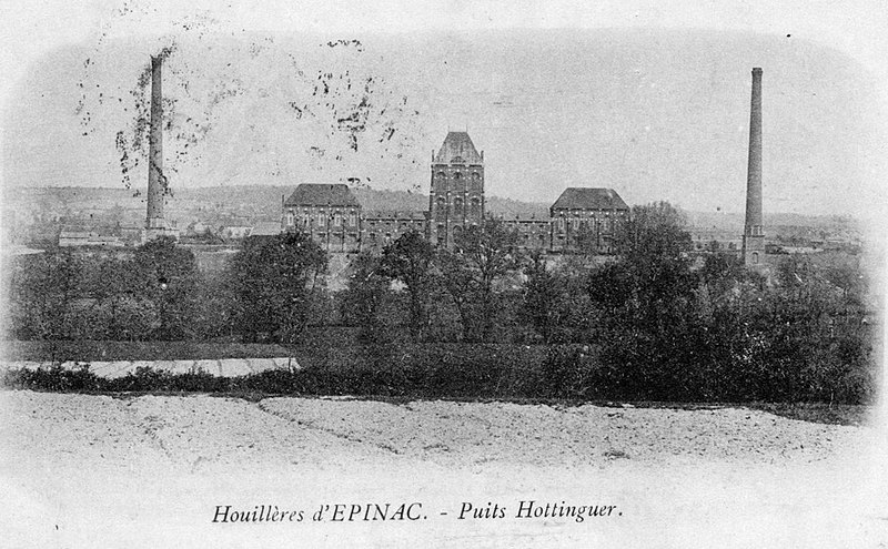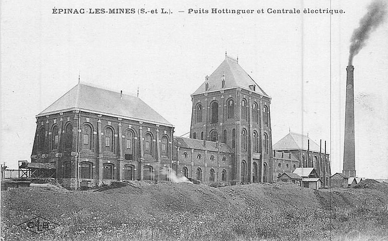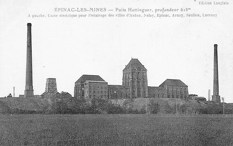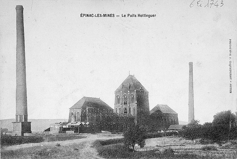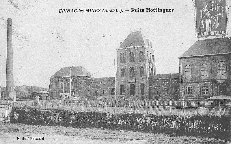 Le puits Hottinguer, l'un des principaux charbonnages des houillères d'Épinac, se distingue par son système d'extraction atmosphérique original. Les bâtiments, édifiés entre 1872 et 1876, abritaient un piston se déplaçant dans un tube de 558 mètres usiné au Creusot selon la technique de l'ingénieur Zulma Blanchet, solution retenue parce que les câbles traditionnels ne permettaient pas alors d'atteindre de grandes profondeurs. Le fonçage du puits a commencé le 26 mai 1863 et, après avoir atteint 447 mètres en 1868, la houille a été trouvée le 17 novembre 1871 à 618 mètres de profondeur, faisant du puits le plus profond de France à sa mise en service. L'exploitation initiale resta faible jusqu'aux années 1884-1885 en raison de difficultés liées au système pneumatique, de la puissance insuffisante d'une machine à vapeur de 40 chevaux et de la qualité médiocre des couches rencontrées. La production augmenta ensuite avec de nouvelles découvertes à l'étage 618 et après la fiabilisation du procédé pneumatique. À la suite du décès de M. Blanchet en 1887, l'extraction par tube fut arrêtée et l'exploitation se concentra sur l'étage 618 en traction par câbles. La centrale électrique du puits fournissait du courant au moins jusqu'à Autun et Meursault en 1910. Le puits cessa définitivement d'extraire en 1936, soit trente ans avant la fermeture complète du bassin d'Épinac.