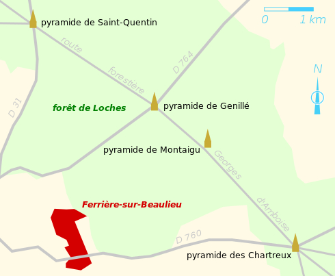 La pyramide de Saint-Quentin est l'une des quatre pyramides en pierre qui jalonnent la route forestière Georges-d'Amboise, dans la forêt de Loches (Indre-et-Loire). Ces monuments, construits au XVIIIe siècle pour servir de points de ralliement aux équipages de chasse à courre, ont été réalisés dans les années 1770 après l'ouverture de la route en 1769, sur décision du grand maître des eaux et forêts Cabanel d'Anglure, suivant la recommandation de Colbert de 1699. La pyramide de Saint-Quentin, la plus occidentale du groupe, est implantée en limite communale de Saint-Quentin-sur-Indrois (géolocalisation : 47,1719, 1,0284). Elle repose sur un socle carré mouluré; au-dessus, un piédestal présentant des encorbellements sur chacune de ses faces supporte une pyramide élancée, légèrement tronquée, qui se termine par une sphère. Ce décor, sobre mais soigné, distingue chaque pyramide du groupe par des détails architecturaux propres. Les trois autres pyramides (Genillé, Montaigu et des Chartreux) se situent à proximité et, comme celle de Saint-Quentin, ont été inscrites au titre des monuments historiques (les trois premières en 1956, Saint-Quentin en 1958).