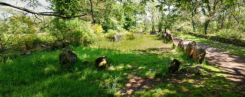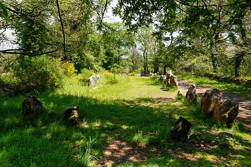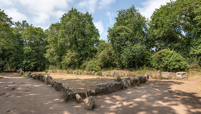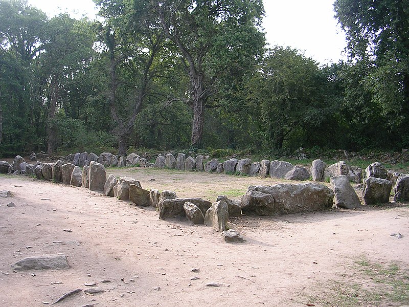 La construction du tumulus est antérieure à celle des alignements. Plusieurs tumulus sont encore visibles à proximité, notamment le quadrilatère du Manio à environ 300 m au nord et le tumulus de Kerlescan à un peu moins de 600 m au nord‑est, et il existait à 40 m au nord‑ouest un tumulus semblable, aujourd’hui détruit, qui comprenait un coffre funéraire recouvert d’une dalle de 2 m de long. L’ensemble pourrait avoir constitué une nécropole.