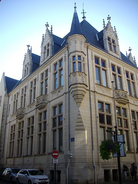 Les façades et les toitures ; les deux cages d'escalier du bâtiment de la recette principale, l'un sur la façade nord donnant sur la rue de la Monnaie et l'autre à l'extrémité sud-est de l'aile sur le square (cad. IO 210) ; le square attenant (cad. IO 211) : inscription par arrêté du 28 septembre 2004