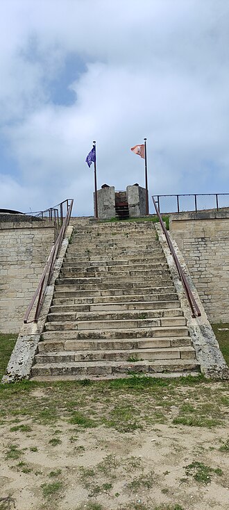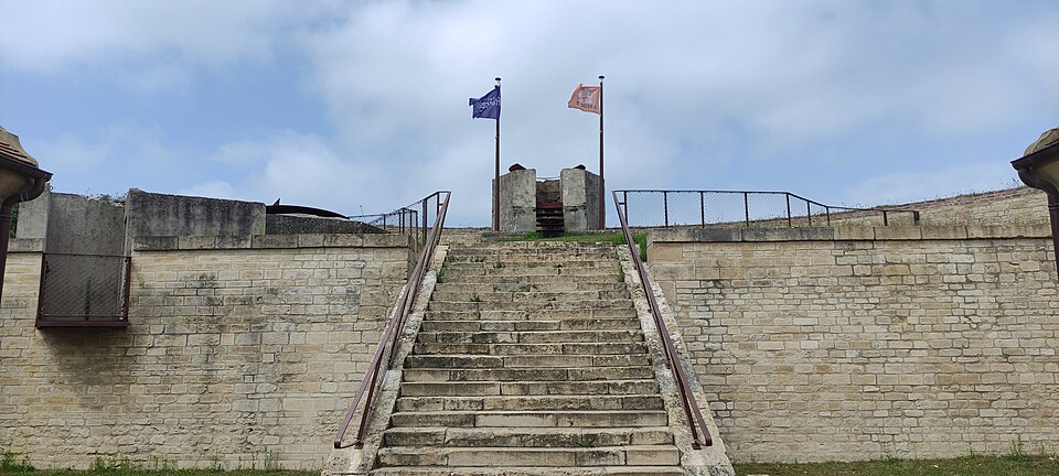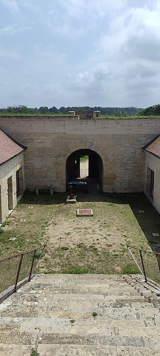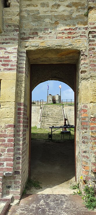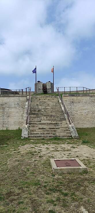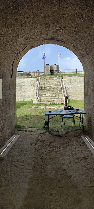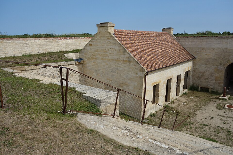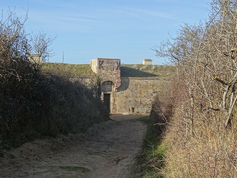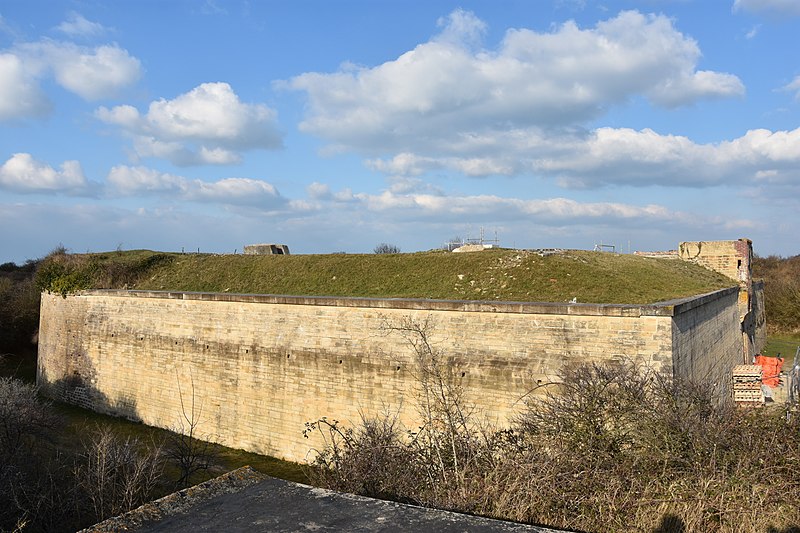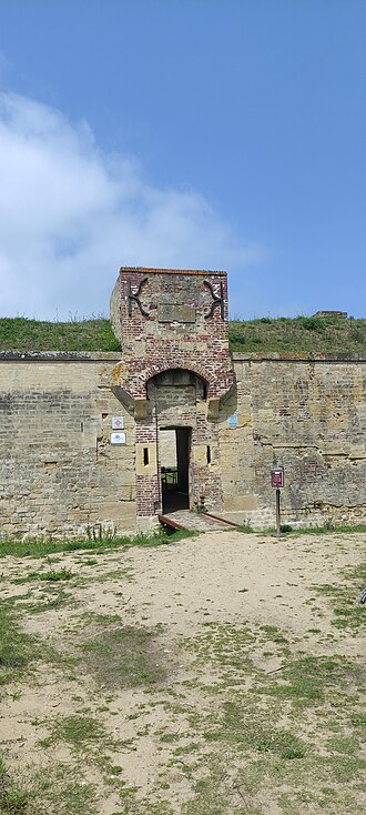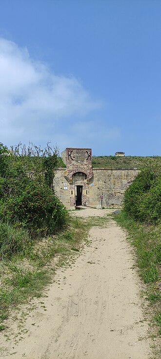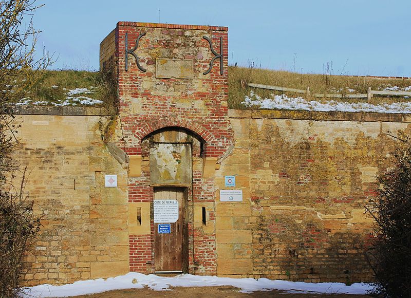 La redoute de Merville, seul vestige de l’ensemble défensif de l’embouchure de l’Orne, se dresse à Merville‑Franceville‑Plage (Calvados) ; c’est un ancien édifice militaire construit sous Louis XVI en 1779. Le projet de trois redoutes, adopté en janvier 1779 pour protéger le littoral des incursions anglaises, prévoyait que Merville surveille l’embouchure de l’Orne, Ouistreham les passes de la rivière et un troisième ouvrage contrôle la fosse de Colleville, susceptible de recevoir de gros navires ; seule la redoute de Merville subsiste intégralement, celle de Colleville ayant été partiellement détruite. Achevée en 1780, elle est constamment occupée et entretenue jusqu’à la chute du Premier Empire en 1815. Après des années de négligence, la monarchie de Juillet la remet sommairement en état et fait édifier une bretèche au‑dessus de l’entrée ; vers 1870–1880 elle sert de poste de douanes avant d’être vendue à un particulier, puis abandonnée par ses descendants. Pendant la Seconde Guerre mondiale, la redoute est intégrée au dispositif allemand du mur de l’Atlantique et entourée d’un réseau de bunkers et de casemates formant le Stützpunkt Franceville West, codé Stp 05. Après la guerre, l’ouvrage tombe en ruine ; il fait l’objet d’une inscription au titre des monuments historiques par arrêté du 30 mars 1978 et est racheté par les Domaines en 1979. La restauration du site commence en 1983 par un débroussaillage qui révèle l’importance de l’ouvrage et l’ampleur des travaux à réaliser ; elle s’achève en 2022.