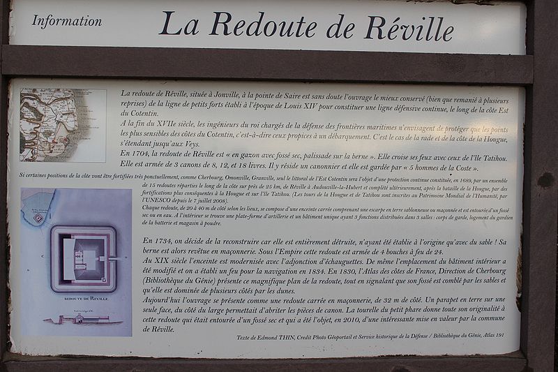 Témoignage de la défense des côtes du Cotentin sous l'Ancien Régime, la redoute de Réville est une petite fortification côtière implantée à la pointe de Saire, sur la commune de Réville (Manche, Normandie). Édifiée en 1689 sous le règne de Louis XIV pour contribuer à la protection du Cotentin contre un éventuel débarquement anglais, elle a été reconstruite en 1734 puis modernisée au XIXe siècle, avec l'ajout d'un phare en 1834. L'édifice présente un plan carré de 32 mètres de côté. La redoute, ainsi que ses fossés, est inscrite au titre des monuments historiques par arrêté du 6 juillet 1992 ; le bâtiment du gardien situé à l'intérieur en est exclu. Elle a fait l'objet d'une mise en valeur par la commune au début des années 2010.