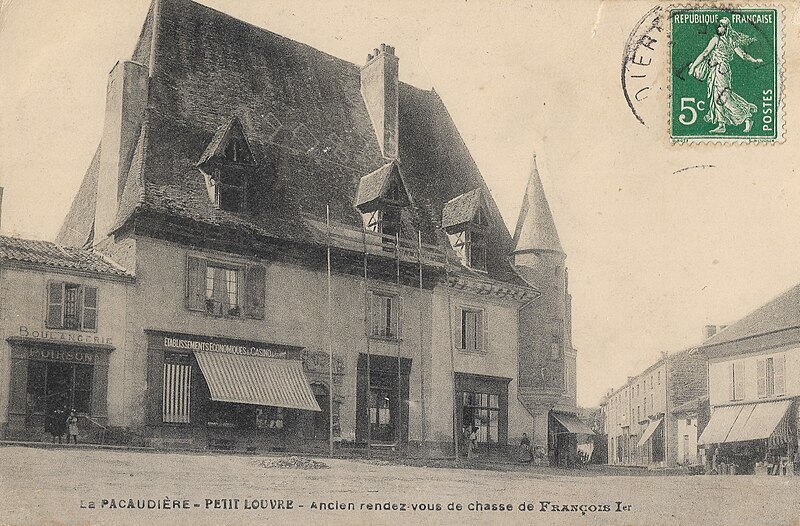 Le Petit Louvre, dit Relais des Postes Royales, est un hôtel particulier situé au 44 place du Petit‑Louvre à La Pacaudière (Loire). Classé monument historique en 1932 pour ses façades et toitures, il a fait l'objet d'une inscription en totalité en 2020 puis d'un classement complet en 2023 ; ses décors peints sont classés depuis le 27 février 1984 et ses graffitis protégés depuis le 7 mai 1986. Bien que mal documenté, le bâtiment est intimement lié aux chevaucheurs et maîtres de poste car il se situe au bord de la route royale reliant Lyon à Paris via Moulins, l'une des voies cartographiées lors de la mise en place de la poste ; la plus ancienne carte où apparaît La Pacaudière date de 1632. Les dendrochronologies réalisées par Jean‑Louis Taupin lors des dernières restaurations indiquent un abattage des bois de charpente vers 1511. La construction peut donc se situer peu après la mise en place de la première poste sous Louis XI et Charles VIII. L'attribution légendaire au Connétable de Bourbon paraît ainsi peu vraisemblable : l'édifice ressemble davantage à une construction fonctionnelle liée à la poste dite « assise ». Les stations postales étant nécessaires toutes les quatre lieux, le maître de poste devait fournir gîte, couvert et montures fraîches aux chevaucheurs et bénéficiait de privilèges comme l'exemption de la taille et des corvées ; ses enfants étaient dispensés du service militaire. Les auberges pouvaient être de tailles diverses ; le Petit Louvre, important en bourg, comportait une chapelle, signe de l'importance de la halte pour personnages de marque et pèlerins. Sur un plan du XVIIe siècle, on repère la chapelle, les écuries et un nombre important de chambres. Le bâtiment a pu également abriter un bureau de poste, notamment en 1733, ou la brigade de la Maréchaussée, notamment en 1750. En 1780, Mme de Croquet de Belligny vendit le Petit Louvre à Charles Corredegoutte, et en 1850 il servait de presbytère. La commune en est actuellement propriétaire à la suite de deux achats effectués en 1954 et 1967. En 2017, une réplique a été réalisée sur un rond‑point au nord de la ville. Le Petit Louvre est une construction de style gothique Renaissance datant du premier tiers du XVIe siècle. Sa toiture est particulièrement haute, 13 mètres, tandis que le gros œuvre mesure 9,75 mètres. La façade côté place possède une échauguette en briques émaillées noir, vert et jaune reposant sur un cul‑de‑four en pierre blonde. La charpente en chêne présente une ossature à trois niveaux d'entraits, deux versants est et ouest et deux croupes triangulaires sud et nord ; son volume est estimé à 1600–1700 mètres cubes pour un poids d'environ 80 tonnes, comparaison faite avec la carène d'un voilier trois‑mâts. Il s'agit d'une « charpente française à très longs chevrons » caractérisée par des aisseliers en arc. Le couloir et l'escalier sont couverts de graffitis dont la plupart des dates se situent sous le règne de François Ier, probablement recouverts ultérieurement et jamais étudiés de manière approfondie. La seule identité quasi certaine est celle de Jacques Arcadelt, musicien de passage en France en 1546‑1547, qui a laissé sa signature dans l'escalier ; l'ensemble des graffitis, d'origines diverses et cosmopolites, contribue à la singularité du bâtiment dans la Loire.