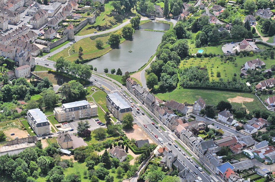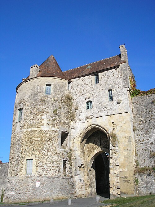Restes de la porte Lecomte : inscription par arrêté du 31 mai 1927 ; Porte des Cordeliers : classement par arrêté du 13 mars 1930 ; Vestiges de l'enceinte fortifiée : de la porte du Château à la porte de Guibray : rue Porte-du-Château 10, 8 (cad. B 67, 68) , rue Blâcher 32, 28, 22, 10, 6 (cad. D 87, 92, 96, 105, 108 à 110). De la porte Guibray à la porte Marescot : rue Amiral-Courbet (cad. D 521, 519, 513, 514, 515, 512, 509). De la porte Marescot à la porte Lecomte : rue Georges-Clémenceau (cad. B 801) , rue Victor-Hugo 15, 17, 19, 21, 23, 25 (cad. B 604, 608, 612, 615) , rue du Sergent-Goubin (cad. B 625). De la porte Lecomte à la route de Caen : rue du Sergent Goubin 24, 22, 20, 2 (cad. B 566, 569, 562, 563, 559, 556, 557, 1058 à 1060) , rue Gambetta 18, 14, 12 (cad. B 1045, 1048, 994, 997). De la route de Caen à la porte Philippe-Jean : rue Frédéric-Gaberon (cad. E 235) , rue des Cordeliers (cad. E 247) , rue du Camp-Ferme (cad. E 354, 364, 365, 370, 383). De la porte Philippe-Jean auchâteau : place Guillaume-le-Conquérant et rue de la Porte-Philippe-Jean (cad. E 585, 572, 578) , place Guillaume-le-Conquérant (cad. E 594, 610, 612, 613) : inscription par arrêté du 19 juin 1951
