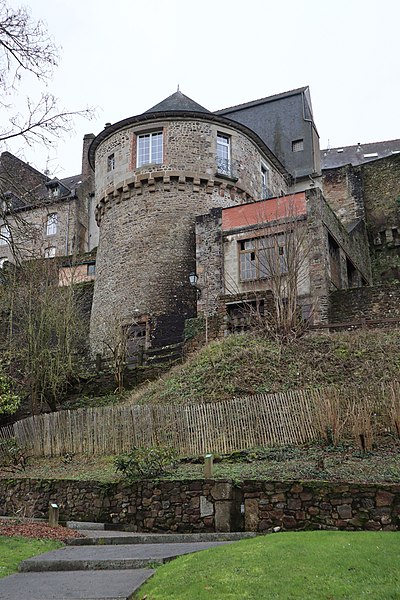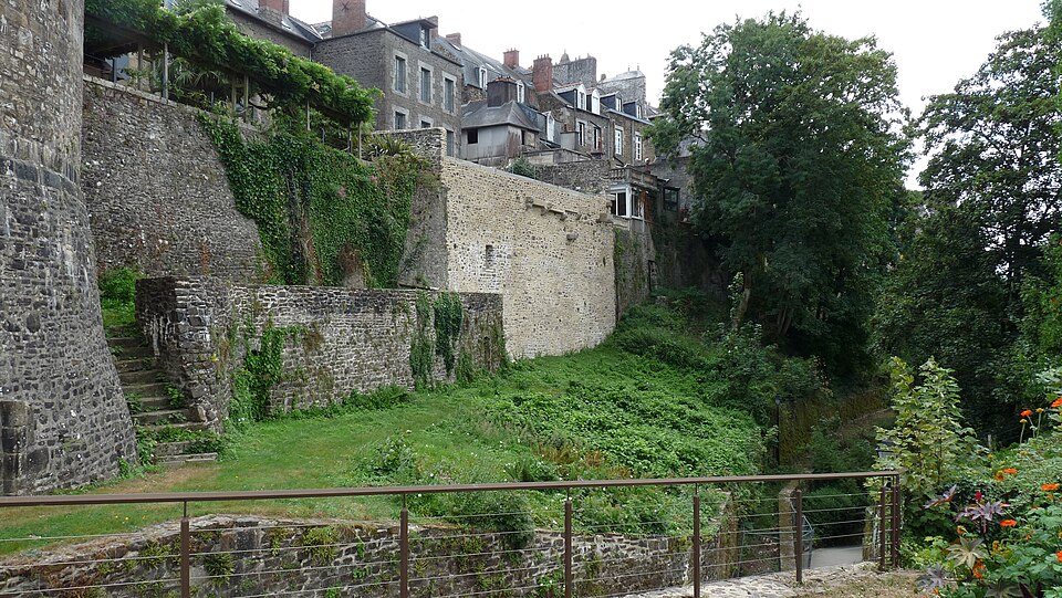 Les remparts, de la tour Montfromery à la tour Desnos et au delà jusqu'à la parcelle 442 incluse ; la base de la tour Cardinale ; le reste de la tour au-delà du Nançon (cad. AC 97, 105, 114, 116, 118, 119, 125, 129, 130, 136, 137, 139, 140, 143, 144, 147, 150, 151, 156, 160, 161, 164, 166, 167, 362, 363, 368, 374, 375, 377, 378, 383, 397, 398, 400, 401, 432, 433, 435, 441, 479) : inscription par arrêté du 16 janvier 1947