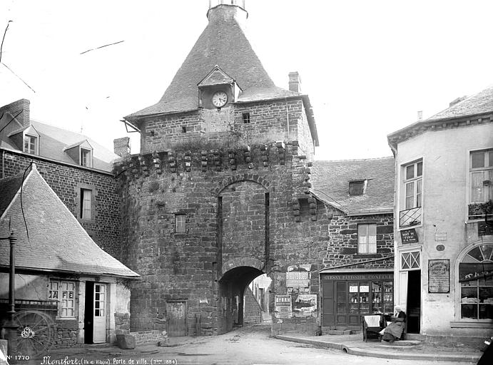 Les remparts et le château de Montfort-sur-Meu sont des édifices anciens de la commune de Montfort-sur-Meu, en Ille-et-Vilaine (Bretagne). Les vestiges entouraient autrefois le bourg et sont aujourd’hui principalement visibles au nord, dans le prolongement de la tour du Papegault, le long du Garun, du Meu et du parking de la rue des Douves. Les fortifications ont été reconstruites entre 1440 et 1480. Elles comportaient trois portes : la porte Saint-Jean ou du Boulevard, la porte de Coulon dite porte Blanche sur le Meu — qui servait de corps de garde au Moyen Âge — et la porte Saint-Nicolas ou de l’Horloge, datée de 1380. Plusieurs tours de défense complétaient l’enceinte : la tour du Pas-d'âne dont la base subsiste près du Meu, la tour du Capitaine, la tour de Guitté au confluent des cours d'eau, la tour Beurrouse en regard des jardins du prieuré de Saint-Nicolas, une tour située à environ 25 mètres à l'ouest de la porte Saint-Nicolas, et le donjon ou tour du Papegault. Il ne subsiste aujourd’hui que des vestiges de ces éléments. La porte Saint-Nicolas, qui formait une tour-porte avec un beffroi et des horloges sur deux faces, fut la dernière porte démolie en 1897 au prétexte qu’elle gênait la circulation entre la rue de l'Horloge et la rue Saint-Nicolas. La tour du Papegault est l’élément du château-fort le mieux conservé ; elle aurait été commencée par Raoul VIII à la fin du XIVe siècle et achevée au cours du siècle suivant. On relève aussi des vestiges du châtelet d’accès au château-fort. À la Révolution, le château est déclaré bien national ; la tour est cédée au département puis transformée en prison en 1819. Pour cette nouvelle fonction, des bâtiments annexes et de hauts murs furent établis pour délimiter la cour carcérale. La ville a acquis l’ensemble en 1979, puis des travaux de transformation et de restauration ont été menés dans les années 1980-1990. Les vestiges ont été inscrits au titre des monuments historiques le 15 décembre 1926 ; cette inscription est double, distinguant les parties départementales et les parties privées, et la tour ainsi que les remparts subsistants ont également été portés à l’Inventaire supplémentaire des Monuments Historiques en 1926. Adresse : 2 rue du Château, 35160 Montfort-sur-Meu.