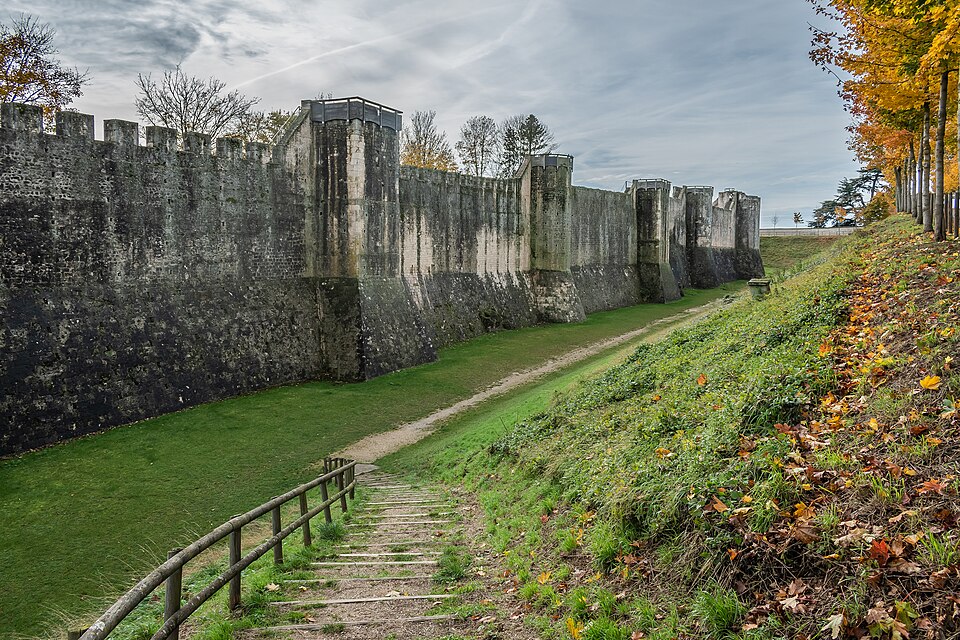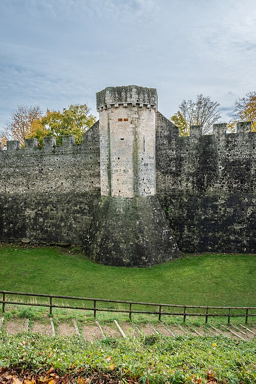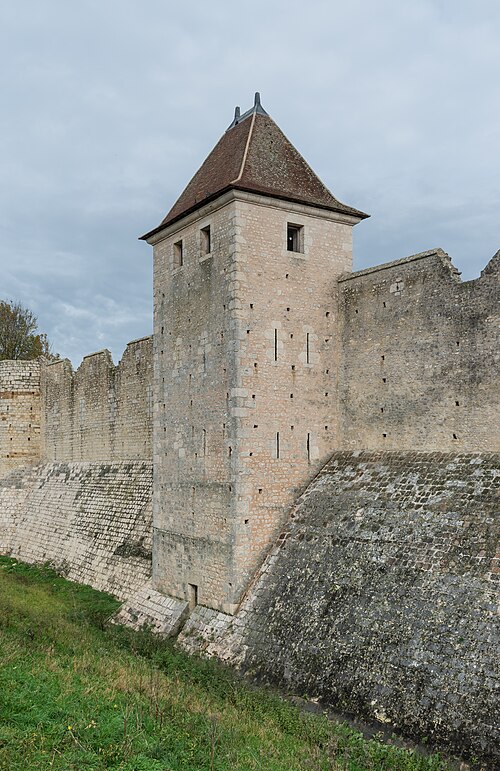 Les remparts et les portes (depuis le Trou au Chat jusqu'à la Tour aux Pourceaux) : classement par liste de 1875 - La portion de remparts de la ville y compris les tours, courtines et bâtiments anciens allant de la Tour aux Pourceaux à la Tour du Bourreau incluse et la partie de courtine joignant la Tour de César à la Tour aux Anglais : classement par arrêté du 17 février 1942 - Les parties de remparts appelés mur du Bourg Neuf et mur des Brébans (cad. AS 50, 52 à 54, 45, 351, 337, 339, 308, 322, 35 à 39, 312, 26, 27, 30, 33 ; AP 110, 116, 117, 223, 224, 120 à 122, 124, 125, 127 à 129, 132, 154) : inscription par arrêté du 17 décembre 1992