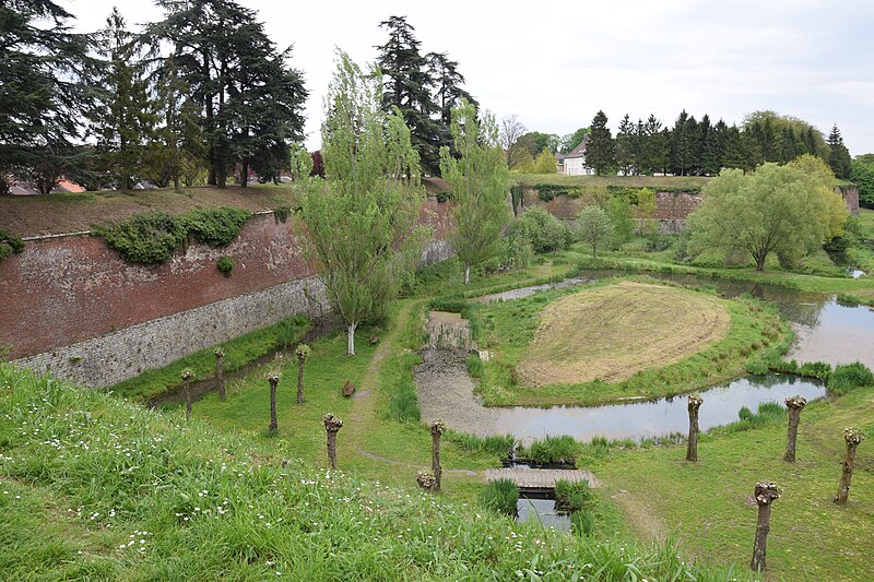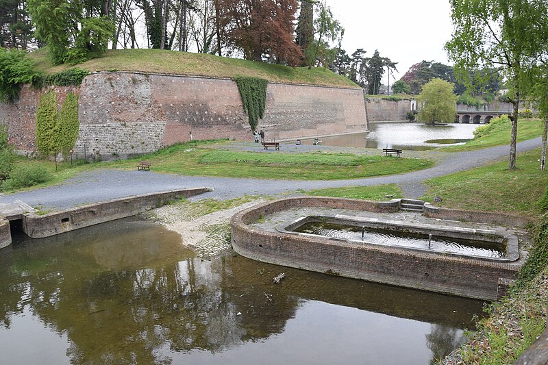 Le front nord‑ouest voit l’intégration d’un étang dans la ligne de défense et la transformation de l’ancien glacis en demi-contre-garde, précédée d’une lunette devant une demi-lune. Le front sud‑ouest est profondément remanié : la courtine est reculée, le demi-bastion des Suisses détaché et transformé, le bastion de Croÿ supprimé et remplacé par deux nouveaux bastions à flancs droits (Saint‑Martin et du Gard) protégés par une tenaille ; le moulin du Gard est déplacé, deux poternes sont percées et le bastion du Gard reçoit une poudrière. Sur le front sud, Vauban construit un demi-bastion autour du château et maintient certaines demi-lunes, tandis que le bastion Vert conserve ses caractéristiques antérieures. Sur le front sud‑est, les modifications sont plus modestes : la porte Faurœulx est conservée, le tracé de la courtine régularisé et la demi-lune de Forest revêtue.