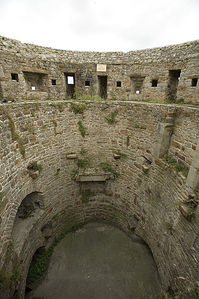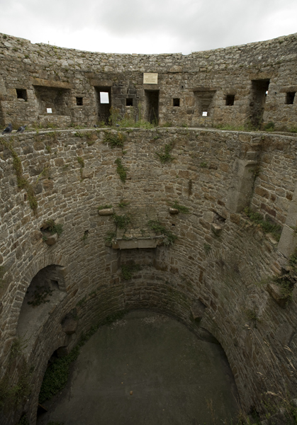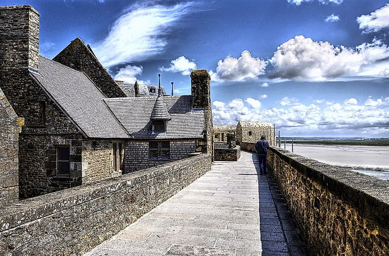 Le parcours extérieur des remparts est praticable à marée basse, de la tour Gabriel jusqu’à la tour Nord à la base du rocher. La tour Gabriel, élevée en 1534 par Gabriel du Puy, présente un plan circulaire adapté au canon, une cheminée centrale destinée à évacuer les fumées et des tirs croisés protégeant les entrepôts des Fanils ; un moulin à vent la surmonta en 1627 et sa tourelle servit également de phare. Les Fanils correspondent aux entrepôts et aux citernes de la ville, regroupés dans une cour protégée par une entrée fortifiée.
