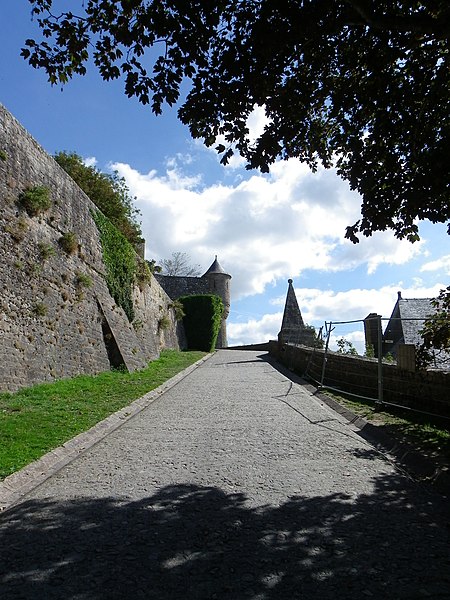 1) Courtines et tours des fronts Nord, Est et Sud de l'enceinte. Ces fronts commencent à la tour Claudine au Nord et finissent à la porte du Roi au Sud, en passant par l'échauguette du Nord, la tour du Nord, le bastillon, la tour Boucle, la tour Basse, la tour de la Liberté, la tour de l'Arcade et la tour du Roi. Leurs dépendances sont : les restes du grand degré qui précèdent la barbacane de l'abbaye, le chemin de ronde des remparts avec ses parapets et les escaliers qui le desservent, la fontaine Saint-Symphorien, la tourelle du guet, la maison de l'Arcade, la porte du Roi avec son escalier. 2) Murailles des deux ouvrages dits l'Avancée et le Boulevard, en avant de la porte du Roi. Les dépendances de l'Avancée sont : la porte et la poterne de l'Avancée donnant sur la grève, le corps de garde des Bourgeois avec ses escaliers, l'ancien mur de défense qui sert de soutènement au souterrain dénommé jardin de la Cure. Les dépendances du Boulevard sont : la porte du Boulevardet le chemin de ronde avec escalier d'accès, qui dessert les défenses supérieures, tant au Boulevard que du redan demi-circulaire appuyé au rocher. 3) Murs du Monteux, de Cantilly et de la Pillette. Le premier de ces murs part de la porte du Roi et s'élève du Sud au Nord sur le rocher suivant une ligne légèrement infléchie, vers son milieu. Il a pour dépendance le chemin dit escalier du Monteux. Le mur de Cantilly se détache du précédent, en se dirigeant de l'Est à l'Ouest suivant une ligne brisée qui forme quatre sections. Le mur de la Pillette, après avoir prolongé celui de Cantilly dans la direction Nord-Ouest jusqu'à l'échauguette du midi, point où il se relie à l'enceinte des Fanils, se redresse vers le Nord à l'angle droit et va rejoindre le mur septentrional du jardin du château. Le mur de la Pillette a pour dépendances l'échauguette du midi (cad. AB 11, 44, 45, 49, 53, 57, 66, 76, 81, 82, 114 à 116, 126, 128) : classement par liste de 1875, délimité par arrêté du9 mai 1904