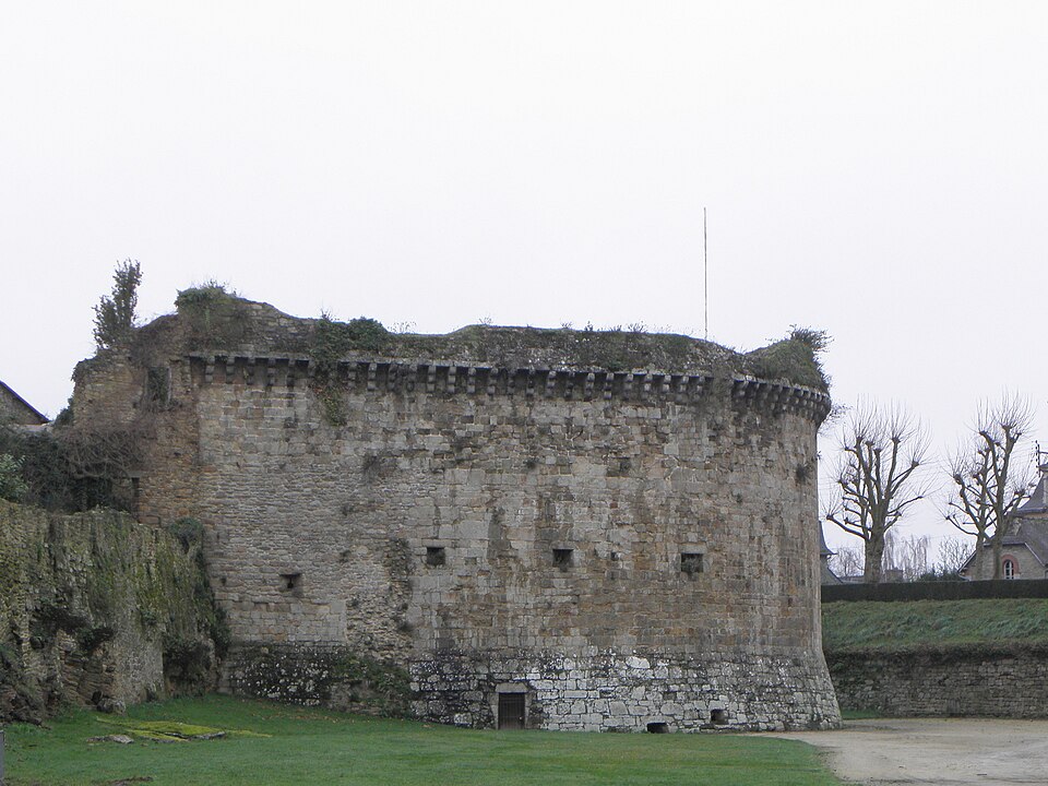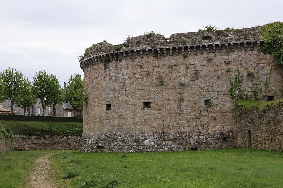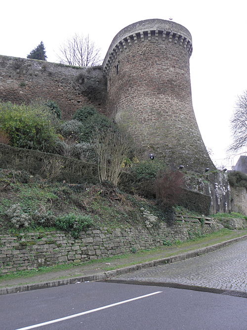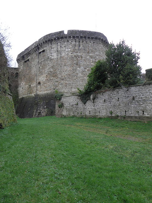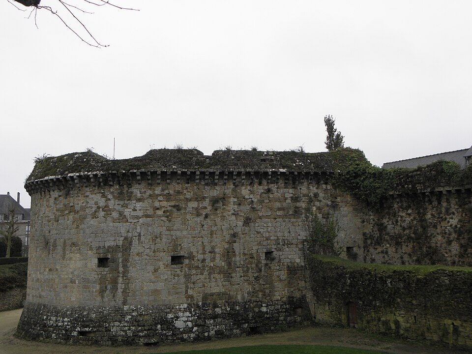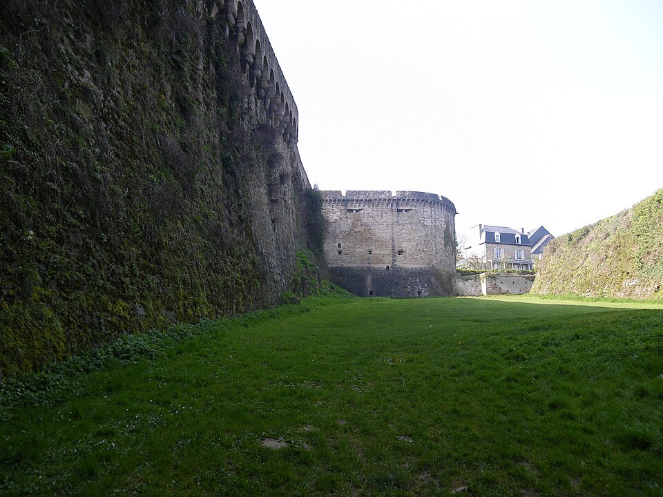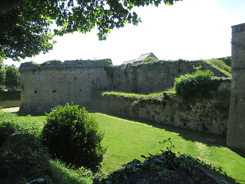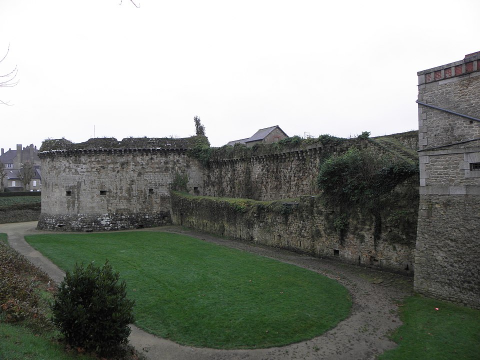 Les remparts en place ont été lancés sous le duc Jean Ier après 1283 et poursuivis par ses successeurs au XIVe siècle, atteignant la configuration et l'emprise qui ne changèrent plus ensuite. Après la guerre de succession ducale (1341‑1379), le duc Jean IV fit élever un donjon, l'actuel château, construit avec le soin et les innovations architecturales de l'époque. Face à l'évolution de l'artillerie, les ducs modernisèrent ensuite l'enceinte : sous Pierre II furent édits la porte de l'Hôtellerie et trois tours, et sous François II une importante campagne de travaux, surtout entre 1476 et 1488, dota les quatre entrées d'ouvrages avancés et de boulevards, élargit les fossés en une grande douve doublée d'une contrescarpe et fit élever cinq importantes tours d'artillerie. Des mandements ducaux de 1476‑1477 et la fonction de capitaine de Jean II de Coëtquen (1476‑1481) témoignent de ces efforts.