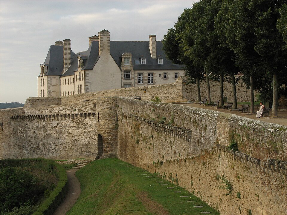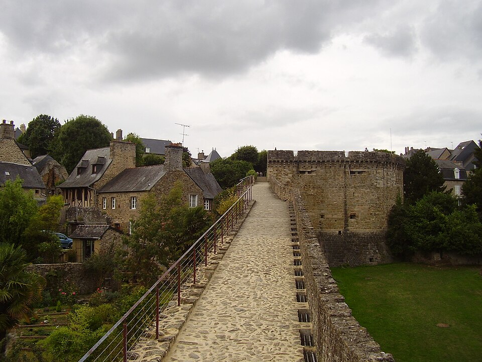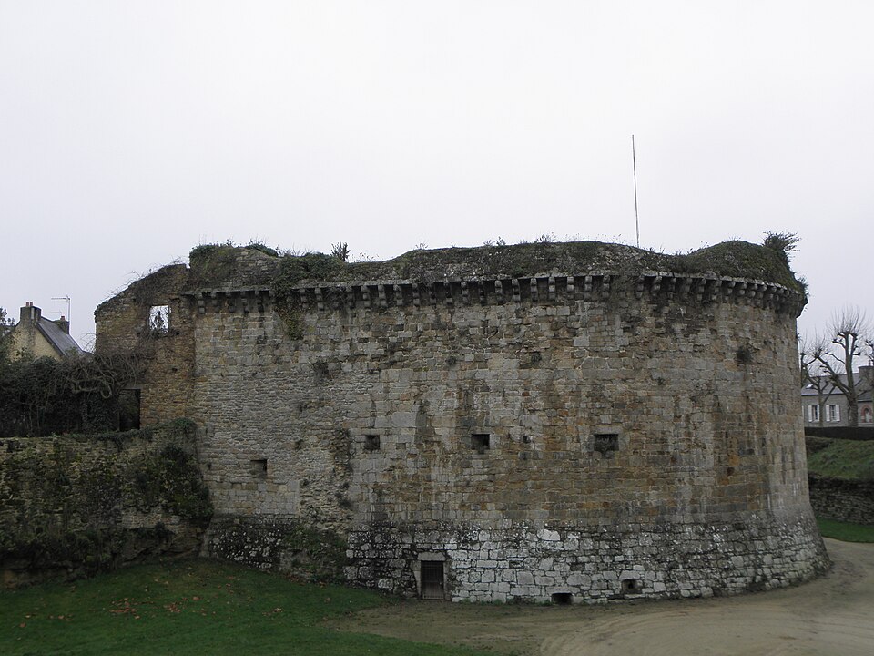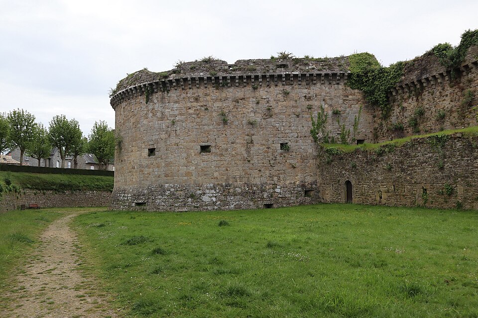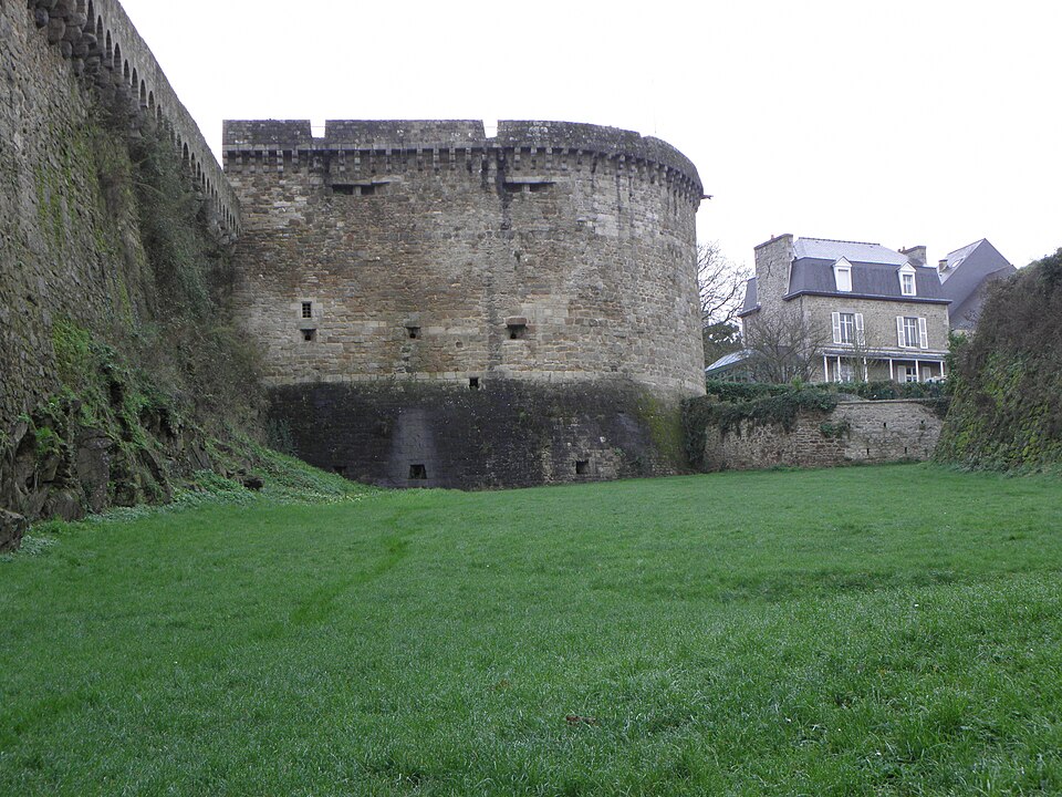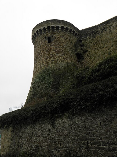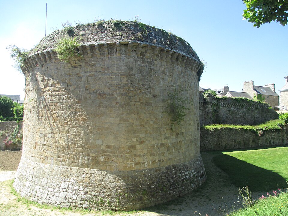 Les remparts en place ont été lancés sous le duc Jean Ier après 1283 et poursuivis par ses successeurs au XIVe siècle, atteignant la configuration et l'emprise qui ne changèrent plus ensuite. Après la guerre de succession ducale (1341‑1379), le duc Jean IV fit élever un donjon, l'actuel château, construit avec le soin et les innovations architecturales de l'époque. Face à l'évolution de l'artillerie, les ducs modernisèrent ensuite l'enceinte : sous Pierre II furent édits la porte de l'Hôtellerie et trois tours, et sous François II une importante campagne de travaux, surtout entre 1476 et 1488, dota les quatre entrées d'ouvrages avancés et de boulevards, élargit les fossés en une grande douve doublée d'une contrescarpe et fit élever cinq importantes tours d'artillerie. Des mandements ducaux de 1476‑1477 et la fonction de capitaine de Jean II de Coëtquen (1476‑1481) témoignent de ces efforts.