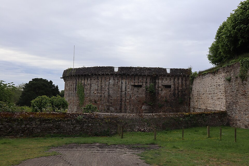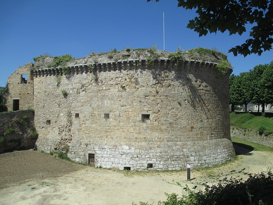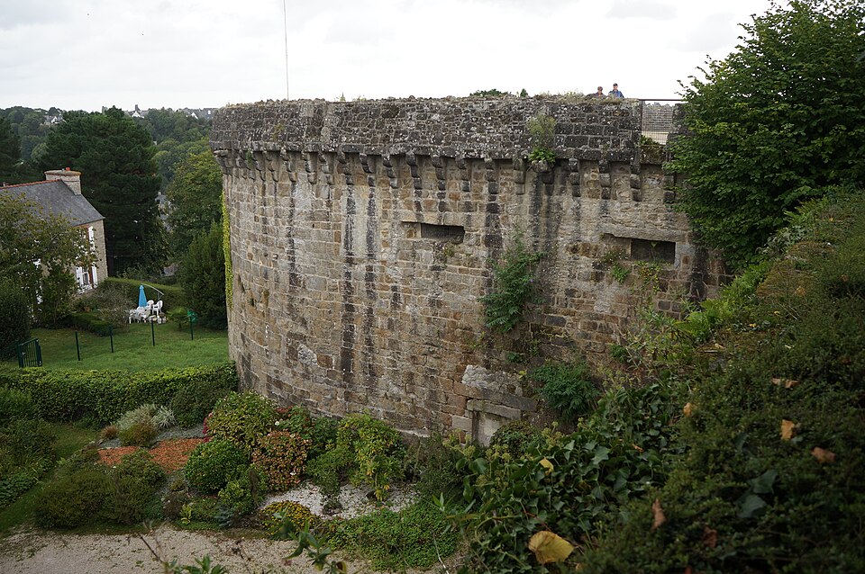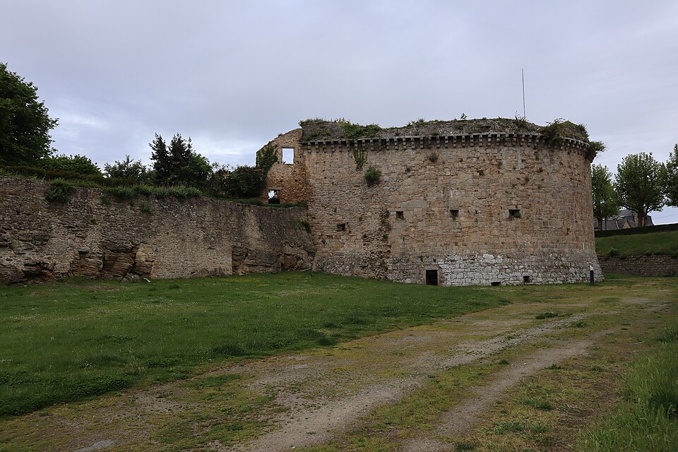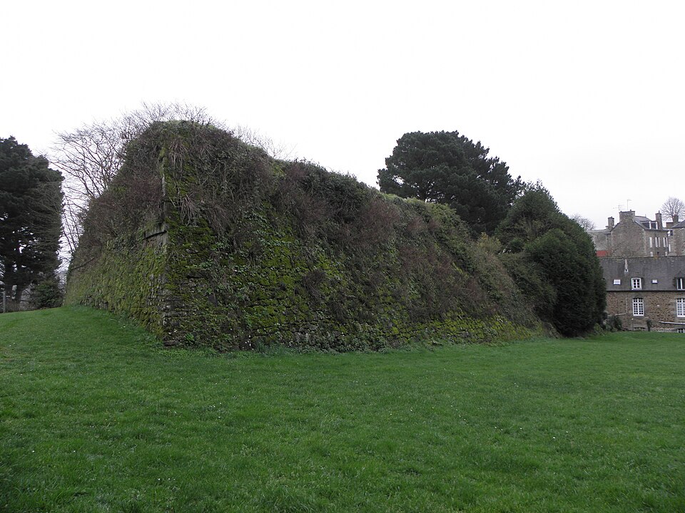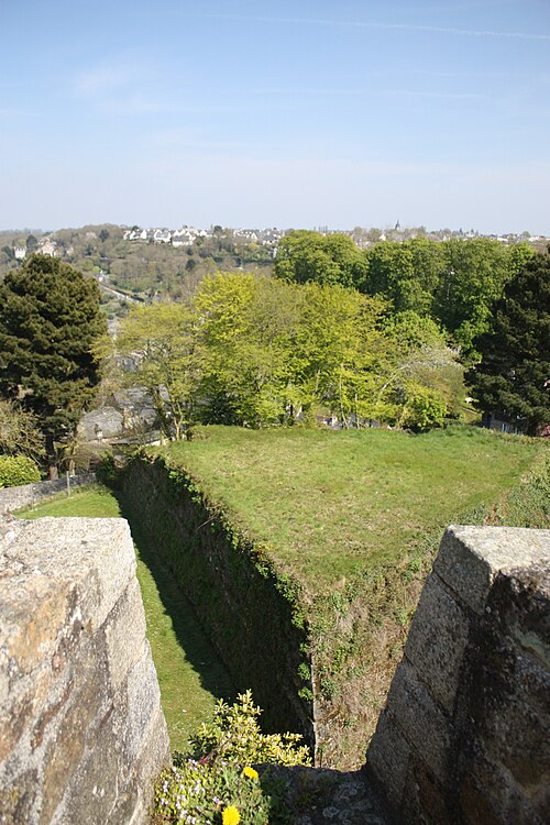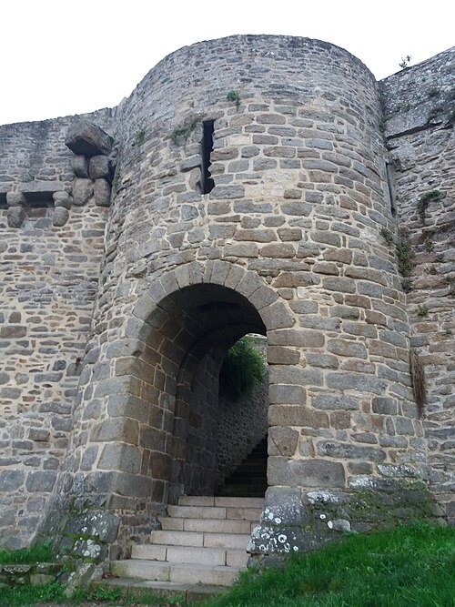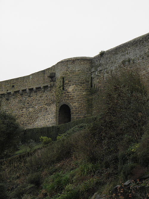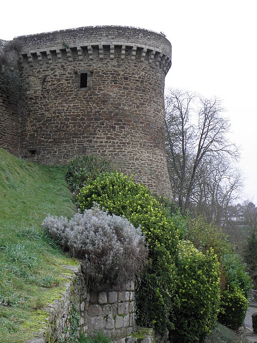 Les remparts en place ont été lancés sous le duc Jean Ier après 1283 et poursuivis par ses successeurs au XIVe siècle, atteignant la configuration et l'emprise qui ne changèrent plus ensuite. Après la guerre de succession ducale (1341‑1379), le duc Jean IV fit élever un donjon, l'actuel château, construit avec le soin et les innovations architecturales de l'époque. Face à l'évolution de l'artillerie, les ducs modernisèrent ensuite l'enceinte : sous Pierre II furent édits la porte de l'Hôtellerie et trois tours, et sous François II une importante campagne de travaux, surtout entre 1476 et 1488, dota les quatre entrées d'ouvrages avancés et de boulevards, élargit les fossés en une grande douve doublée d'une contrescarpe et fit élever cinq importantes tours d'artillerie. Des mandements ducaux de 1476‑1477 et la fonction de capitaine de Jean II de Coëtquen (1476‑1481) témoignent de ces efforts.