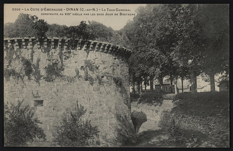 L'origine défensive de Dinan remonte à une motte castrale dite « vieil chastel » ou « Château-Ganne », élevée au XIe siècle sur un promontoire au nord‑est de la ville et détruite vers 1170 ; aujourd'hui, seul le toponyme subsiste. En 1154 le géographe Al-Idrisi décrit Dinan comme une « ville ceinte de murs en pierres », description jugée excessive par certains historiens mais qui traduit l'existence d'ouvrages de fortification, probablement orientés vers le nord et le nord‑ouest.