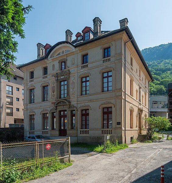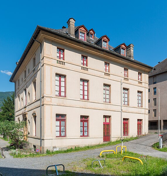 Le terrain où s'élève l'immeuble appartenait à Noël Tron au début du XIXe siècle. L'édifice a été construit en 1854 par Edmond Chambert, architecte départemental et concepteur des thermes de Luchon. La matrice cadastrale indique que la construction s'acheva en 1855 et qu'elle fut imposée à partir de 1858 pour un revenu de 1 200 F. Le commanditaire, Charles Tron, mena une importante carrière politique : conseiller général, deux fois maire de la cité et député. Il se réserva le rez-de-chaussée et la cave pour son usage personnel et affecta les étages supérieurs au logement d'une partie du personnel de l'hôtel d'Angleterre, situé sur la parcelle voisine qu'il possédait également.