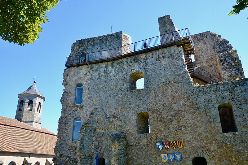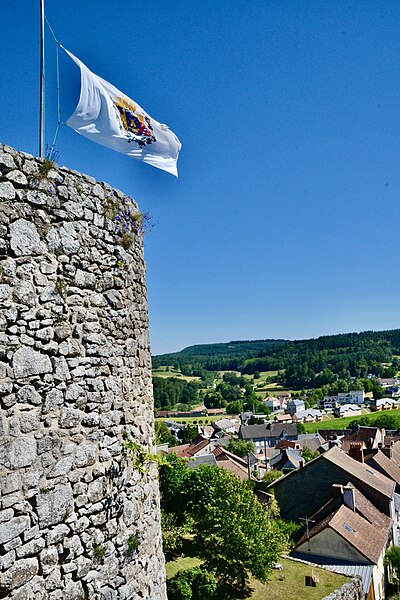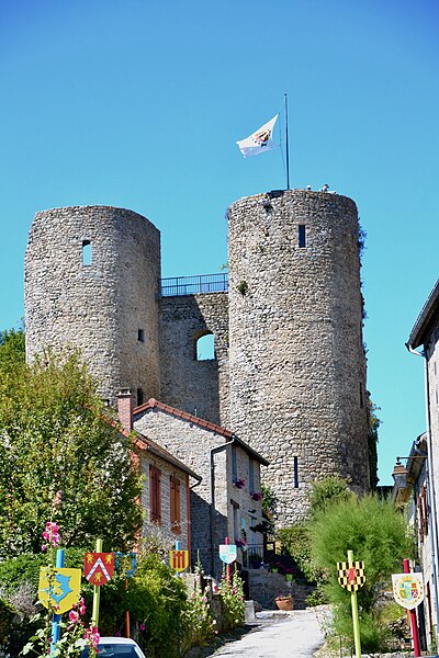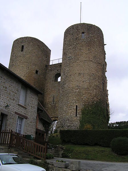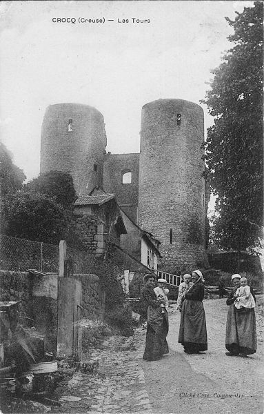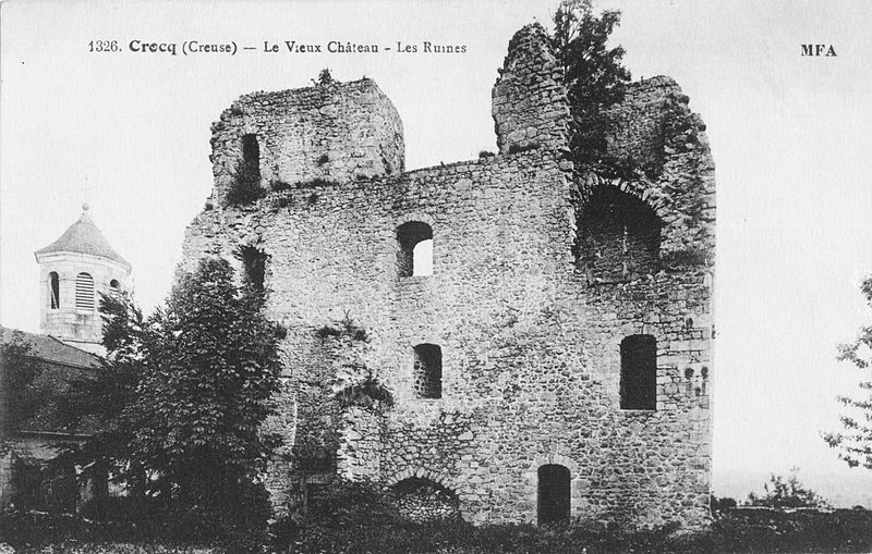 Les vestiges du château de Crocq se dressent sur les hauteurs du village de Crocq, dans la Creuse (région Nouvelle-Aquitaine). Le château féodal a été construit vers 1190 à la demande de Robert Ier, dauphin d'Auvergne. Situé sur l'ancienne route de Clermont à Limoges, il constituait une place militaire importante et un point de fortification occidental du dauphiné d'Auvergne. Crocq et la Combraille firent l'objet de confiscations et restitutions à la fin du XIIe et au début du XIIIe siècle : confisqués en 1196 par le roi Philippe Auguste, les territoires furent restitués en 1199 puis de nouveau confisqués en 1203. Le château fut rasé sur ordre de Richelieu en 1632 ; ses restes sont inscrits au titre des monuments historiques depuis 1926. Il subsiste deux tours demi-circulaires, fermées à la gorge, reliées par une courtine qui s'arrête au pied du dernier étage des tours. Chaque tour comporte deux étages dont le dernier est voûté en berceau ; les niveaux, sans communication directe entre eux, pouvaient être défendus séparément. L'accès s'effectuait par un escalier à vis dont la cage inférieure est encore visible, et au rez-de-chaussée de la tour sud-est un passage étroit débouchait dans le fossé. Des cheminées datées du troisième quart du XVIe siècle ont été déplacées et remployées dans des maisons de Crocq. Depuis plusieurs années, une association locale œuvre pour la restauration du site : l'intérieur de la tour gauche est utilisé comme lieu d'exposition, et la tour droite permet d'accéder au sommet de la tour gauche où un point de vue a été aménagé.