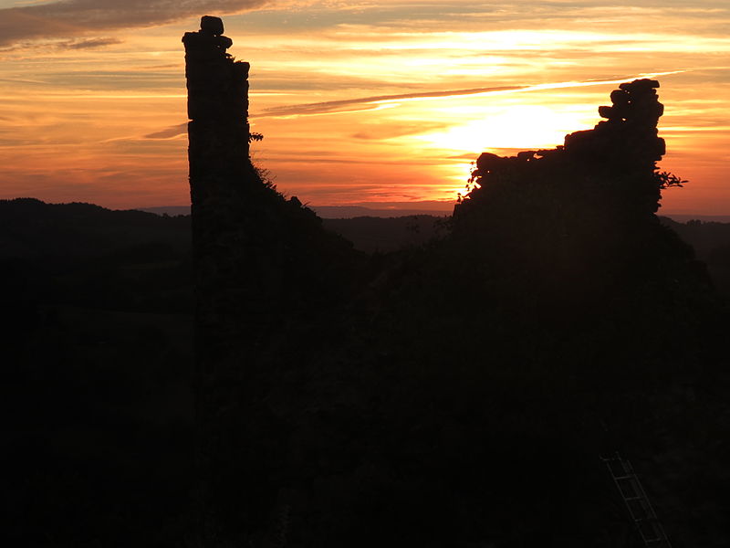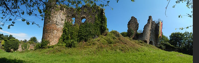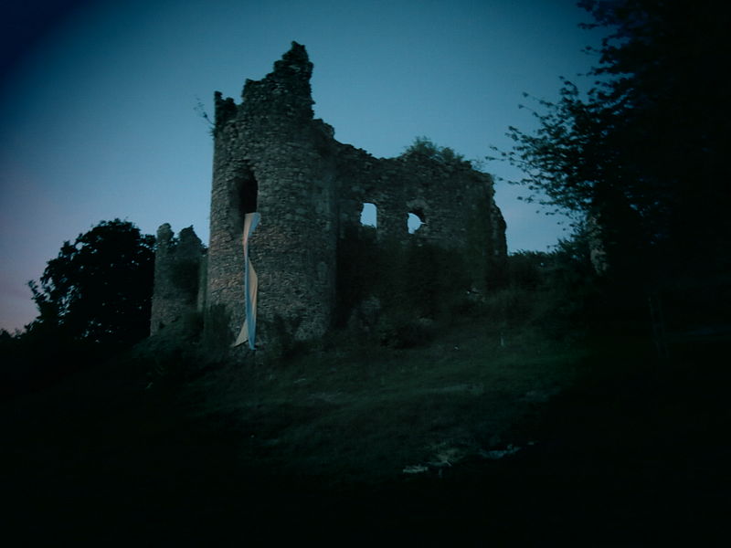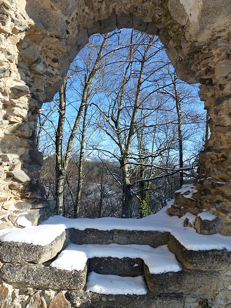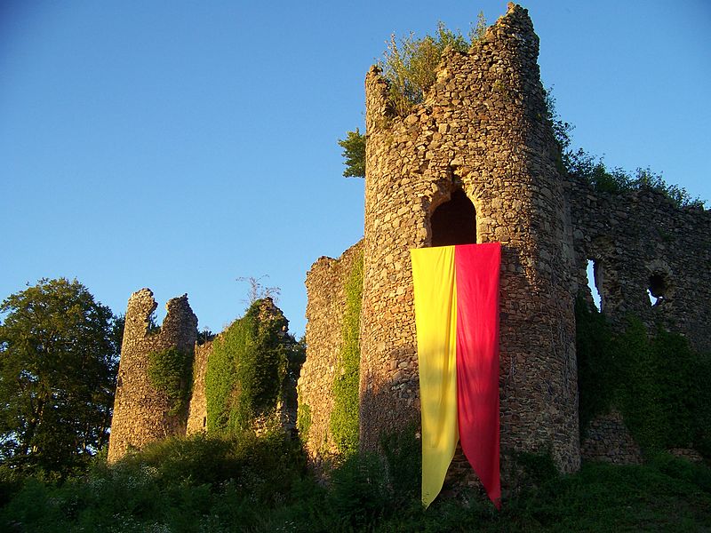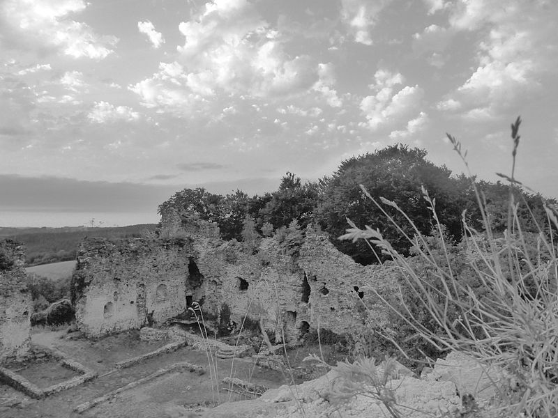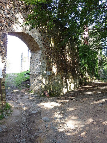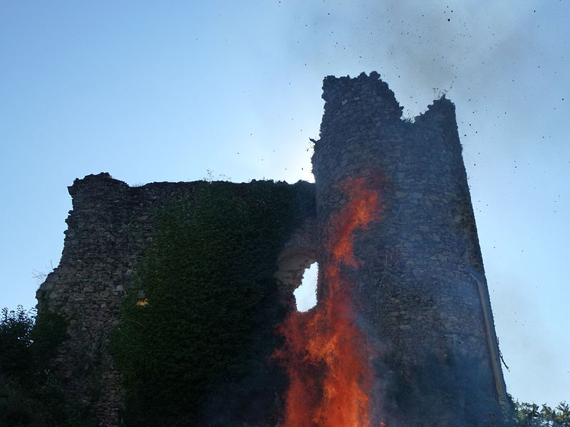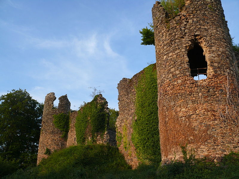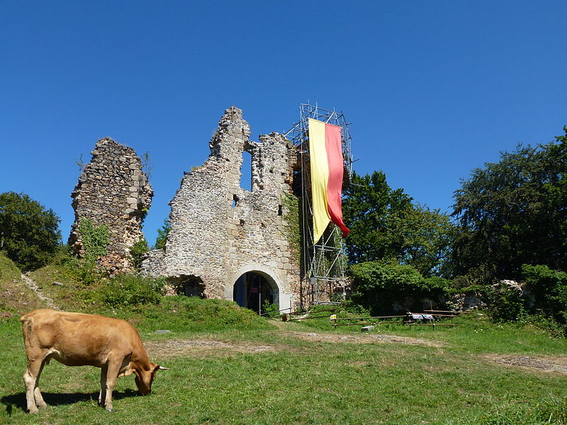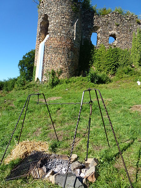 Plusieurs légendes entourent le château, évoquant notamment un seigneur maléfique du XVe siècle qui aurait tenté de brûler un mendiant nommé Brice avant qu'une pluie miraculeuse n'éteigne les flammes et qu'une faille n'engloutisse le bourreau, un duel au retour d'un pillage où un chevalier en armure noire aurait tué un seigneur survivant, et des jeux cruels où des invités furent contraints de danser sur des charbons ou où l'on plaça un paysan face à un taureau. La base Mérimée mentionne la découverte de bronzes en 1867 et la présence antérieure d'un castrum, mais les travaux de l'association n'ont mis au jour aucune structure antérieure au Moyen Âge ; cette mention doit donc être regardée avec circonspection. Le musée de la civilisation gallo‑romaine de Lyon signale pour sa part une œnochoé (registre E 42, inventaire BR. 195) attribuée à la découverte, dont l'emplacement précis n'est pas spécifié.