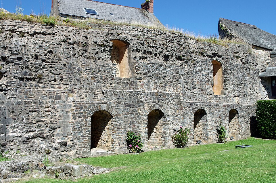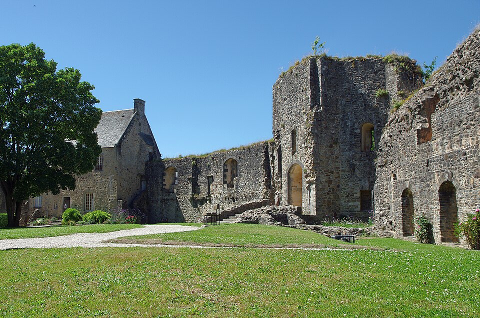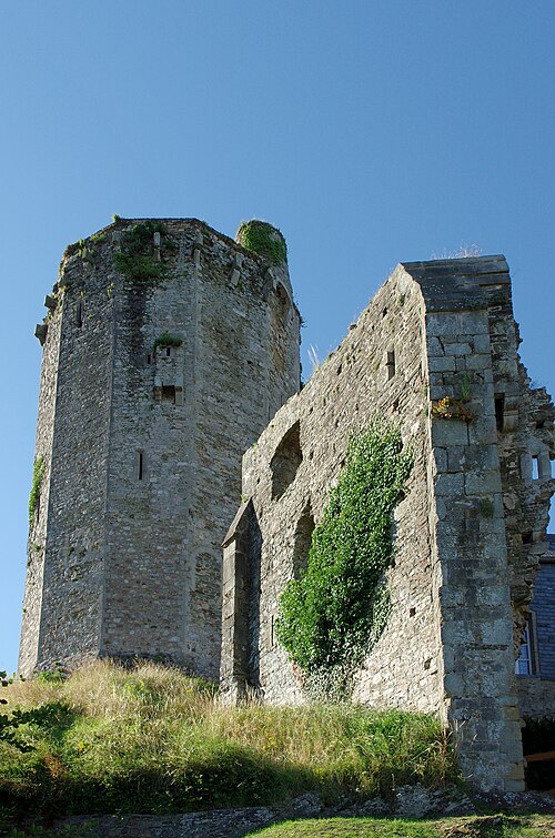 Le logis seigneurial, édifié dans le dernier quart du XIIe siècle, était initialement composé de deux bâtiments distincts correspondant à l’aula et à la camera. De cet ensemble, l’aula subsiste partiellement : cette grande salle de plain-pied, bordée d’un bas-côté aujourd’hui disparu, fut divisée en deux niveaux au XVe siècle alors que le bas-côté avait été supprimé au milieu du XIIIe siècle. Du second bâtiment ne subsiste que le sous-sol, voûté lors d’aménagements datés du début du XVe siècle. La chapelle romane, attestée par une charte de 1271 et connue par des plans du XVIIIe siècle, a été détruite ; quelques modillons et fragments sculptés conservés dans le chartrier évoquent son existence.
