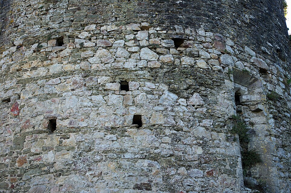 Le donjon, probablement élevé en pierre au cours de la première moitié du XIVe siècle pour remplacer une structure en bois, repose sur une motte qui pourrait remonter à la fondation de la seigneurie. L’entrée principale, avec sa tour-porte rectangulaire en saillie, paraît également avoir été reconstruite à la même époque en remplacement d’une porte maçonnée plus ancienne. La courtine résulte de plusieurs campagnes de construction et fut profondément remaniée au début du XVe siècle lors de l’aménagement d’un bastion sur son flanc sud ; aux XIVe et XVe siècles, plusieurs bâtiments vinrent s’accoler à cette courtine.