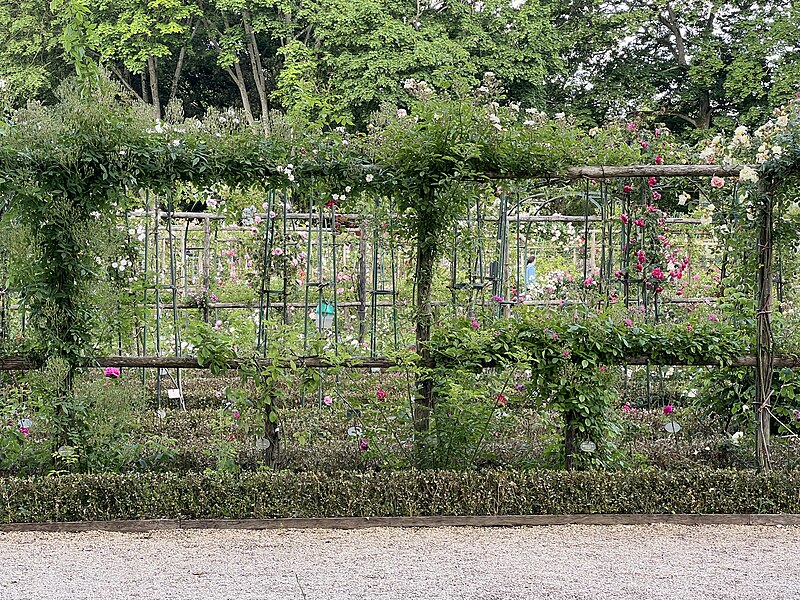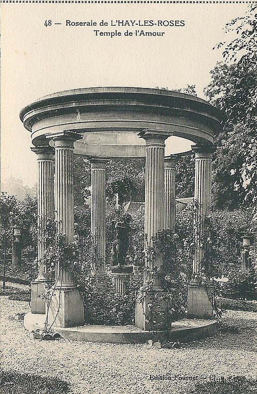 La roseraie du Val‑de‑Marne, ancienne roseraie Gravereaux, se situe dans le parc départemental de la Roseraie à L'Haÿ‑les‑Roses, dans le Val‑de‑Marne, près de Paris. À la fin du XIXe siècle, Jules Gravereaux, administrateur du Bon Marché et passionné de roses, fit appel au paysagiste Édouard André pour concevoir un jardin entièrement consacré à sa collection, donnant naissance à la première roseraie monovariétale. Le parc a été organisé autour d'une roseraie à la française et comprend treize jardins de collection ; il abritait autrefois un théâtre de la rose aujourd'hui disparu. La roseraie présente aujourd'hui 3 100 espèces et variétés et environ 16 000 rosiers. Une demeure apparaît sur les plans terriers de la fin du XVIIIe siècle et aurait été liée à l'architecte Jean‑Pierre Brulle en 1772 ; en 1804 l'orfèvre Henri Auguste aurait fait reconstruire la maison et édifier des écuries sous la direction de l'architecte Larseneur, et le parc à l'anglaise daterait vraisemblablement de cette période. Acquise par Jules Gravereaux en 1892, la propriété fut enrichie de fabriques dont seuls subsistent aujourd'hui la chapelle et le musée ; le chalet normand a disparu en 1971 et le théâtre de verdure peu après 1938, un rapport ayant alors préconisé sa démolition en raison de son mauvais état. Vendue en 1936 au département de la Seine, la roseraie fut ouverte au public tandis que la demeure tomba en délabrement. Sauvée de la ruine à la fin des années 1960, la maison fut remeublée pour servir de résidence au sous‑préfet de la nouvelle circonscription. Transférée ensuite au département du Val‑de‑Marne, la roseraie a depuis été reconnue et protégée au titre du patrimoine et de la conservation des collections végétales, selon les mentions figurant dans les sources.