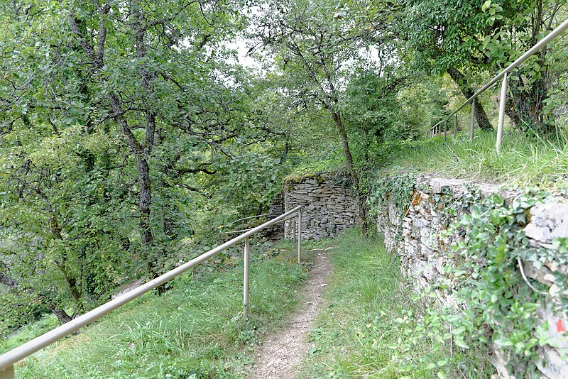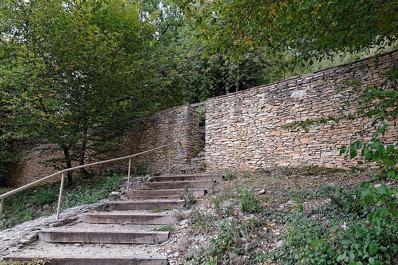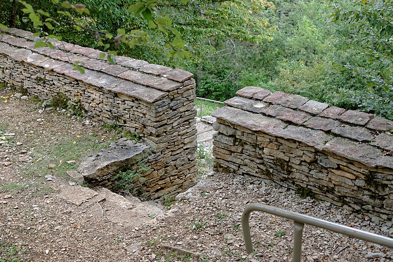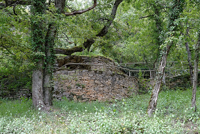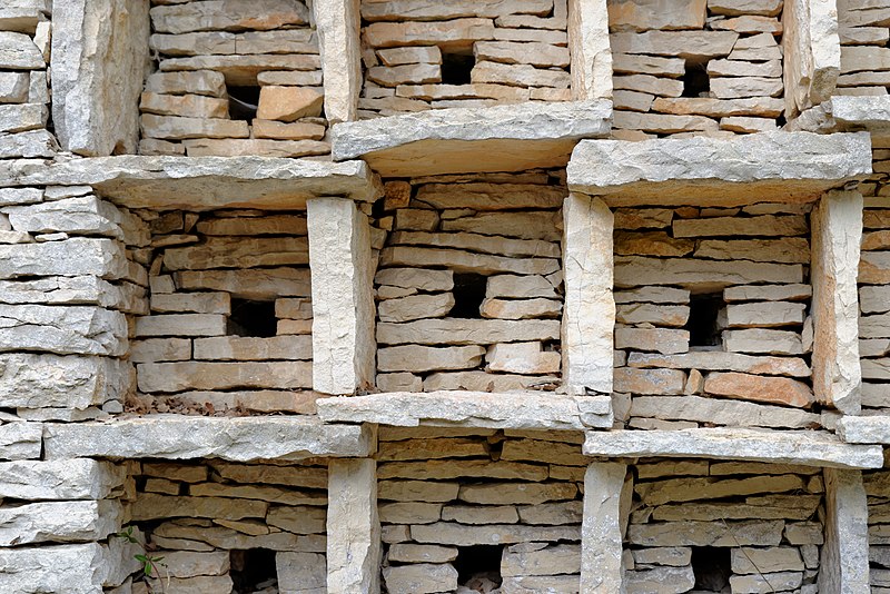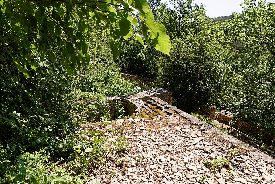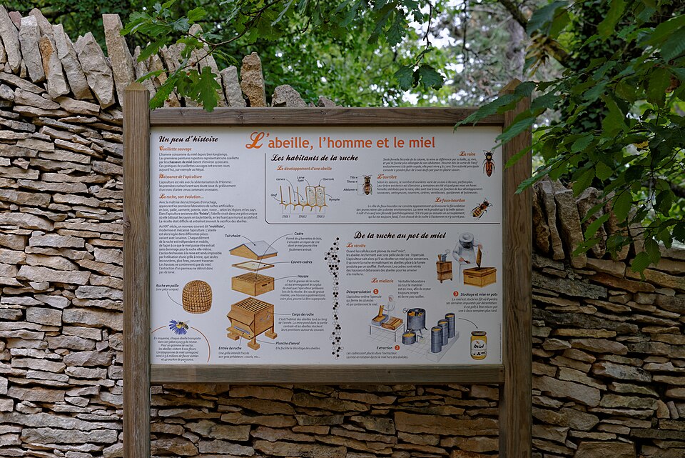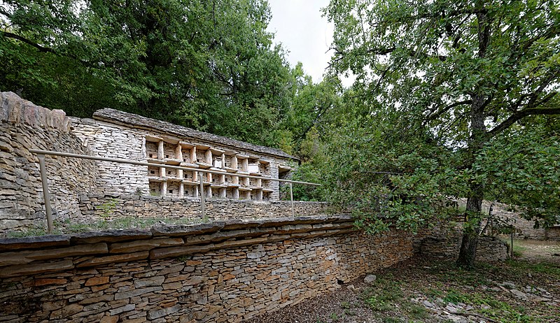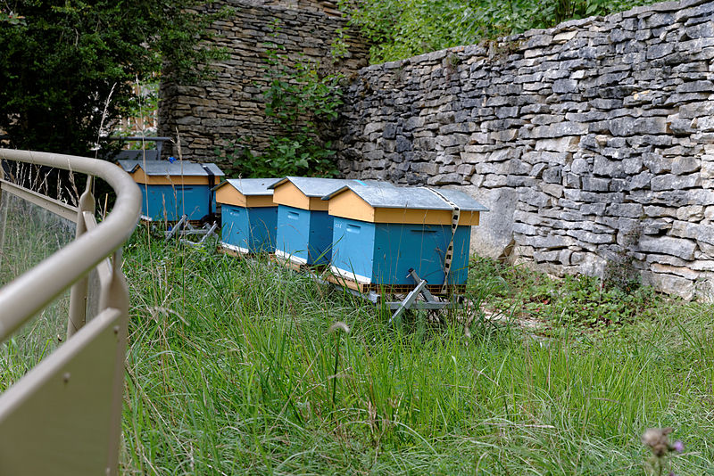 L'emplacement du rucher est attesté sur le plan cadastral napoléonien de 1812 et la propriété remonte au XIXe siècle. Il a été bâti selon les méthodes traditionnelles locales, en moellons et laves extraits de carrières voisines, sur une terrasse. Le bâtiment oblong, couvert d'un toit monopente en laves, se divise en deux parties. La première comprend, sur trois niveaux, neuf cases en pierre adossées à un mur ; à l'intérieur, un couloir parallèle dessert le même nombre de cases. L'accès à ce couloir se fait par une porte percée à droite des cases extérieures, surmontée d'un linteau monolithe et fermée par une grille métallique. La seconde partie, autrefois couverte, formait un abri et un laboratoire pour l'apiculteur.