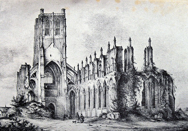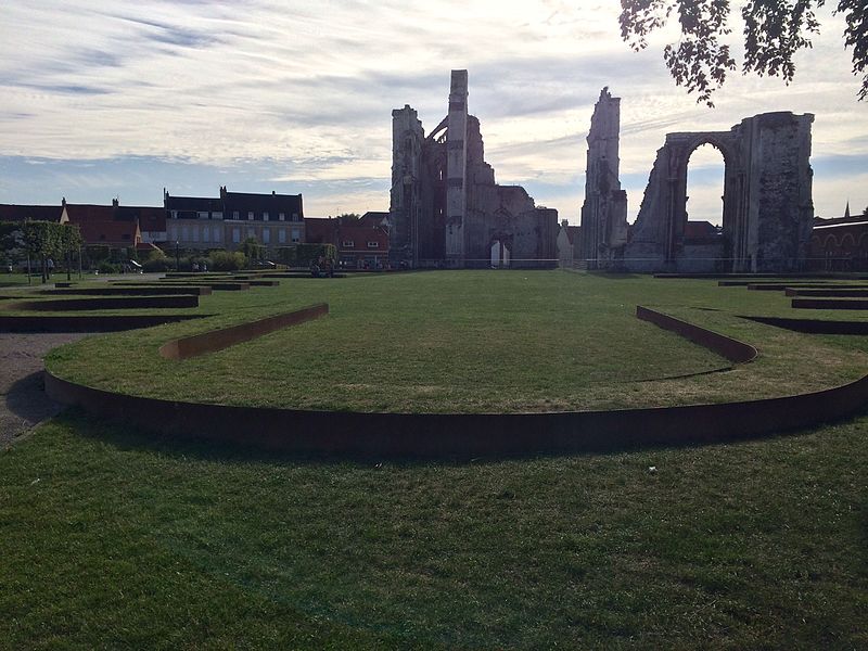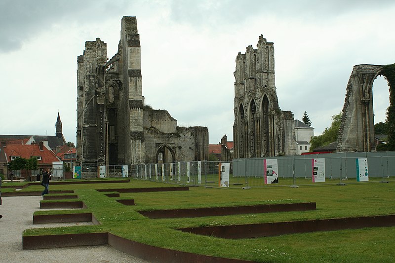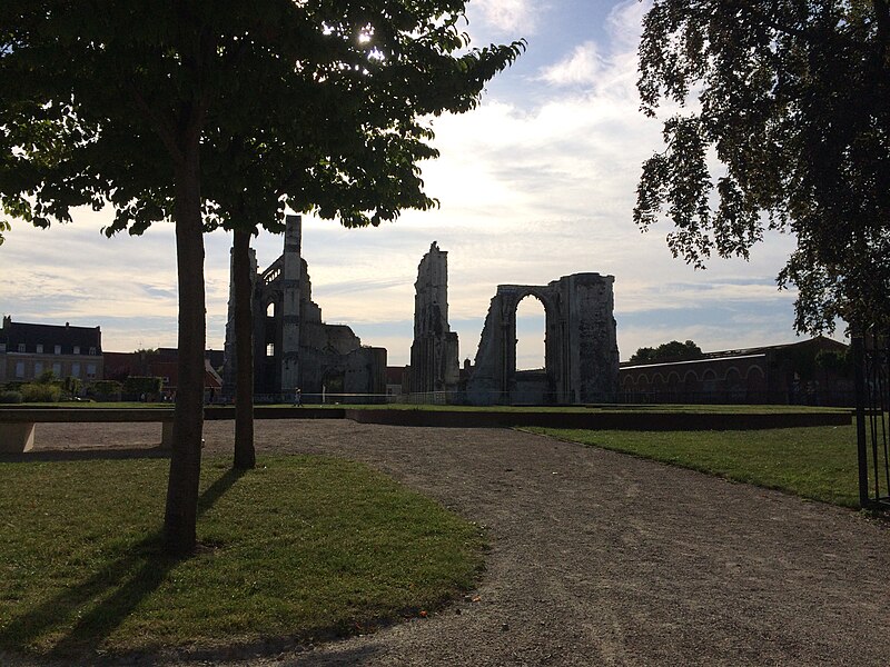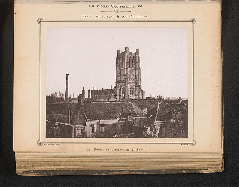L'abbaye Saint-Bertin est une ancienne abbaye bénédictine de Saint-Omer (Pas-de-Calais), fondée au VIIe siècle sous le nom d'abbaye de Sithiu ; ses vestiges, situés rue des Ruines Saint-Bertin, sont classés monument historique en 1840. Implantée au nord-est de la ville et isolée, elle reprend le plan typique du monastère bénédictin, ceint d’un mur et bordé par l’Aa et la Haute-Meldick. L’ensemble se répartissait en trois pôles : les lieux réguliers autour de l’église abbatiale, les quartiers périphériques réservés aux responsables et les annexes économiques. L’église formait le cœur du monastère ; le cloître, adossé au flanc sud pour l’abriter des vents du nord, comportait quatre galeries couvertes autour desquelles s’organisait la vie matérielle et intellectuelle des moines. L’aile sud, vaste vaisseau de sept travées séparées par six piles et attribuée à l’abbé Gilbert, servait de réfectoire. L’aile ouest comprenait le parloir, le cellier, le chapitre, le chauffoir et les cuisines ; ces bâtiments furent affectés en dépôts et magasins en 1789. Les quartiers de l’abbé, du chambellan, du receveur et du prieur occupaient respectivement l’ouest, le sud et l’est du noyau conventuel. En périphérie, des annexes agricoles et artisanales — exploitations, ateliers, moulins, écuries, brasserie et boulangerie — assuraient l’autonomie des religieux et le respect de la clôture.