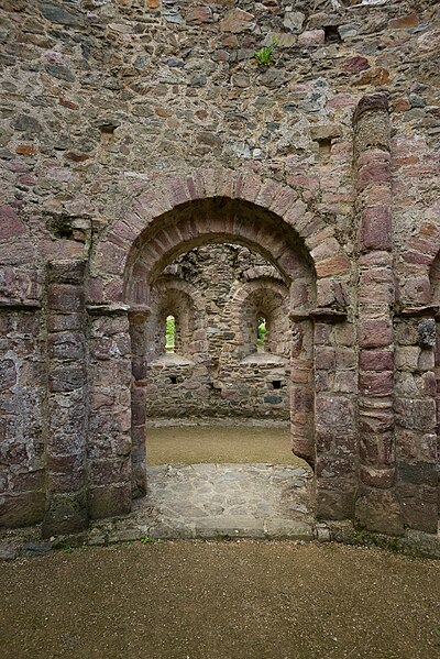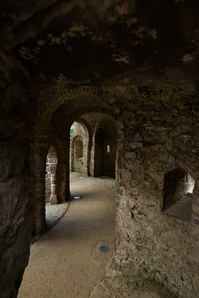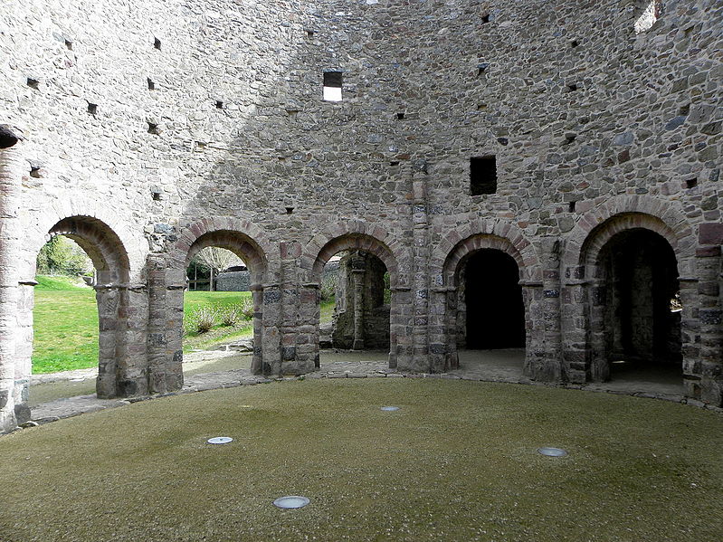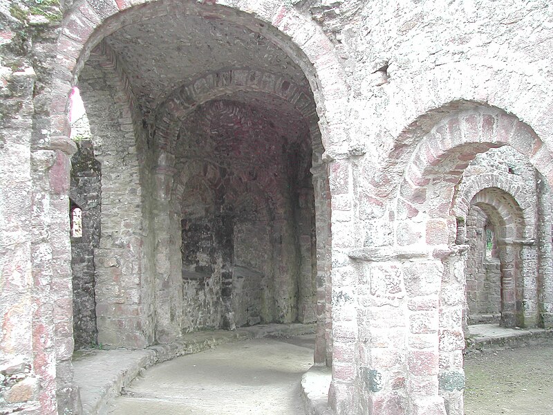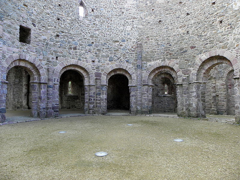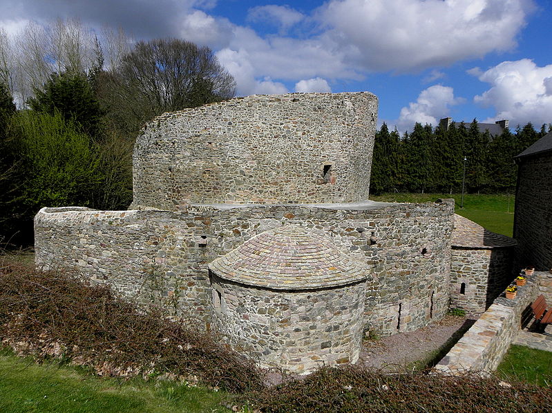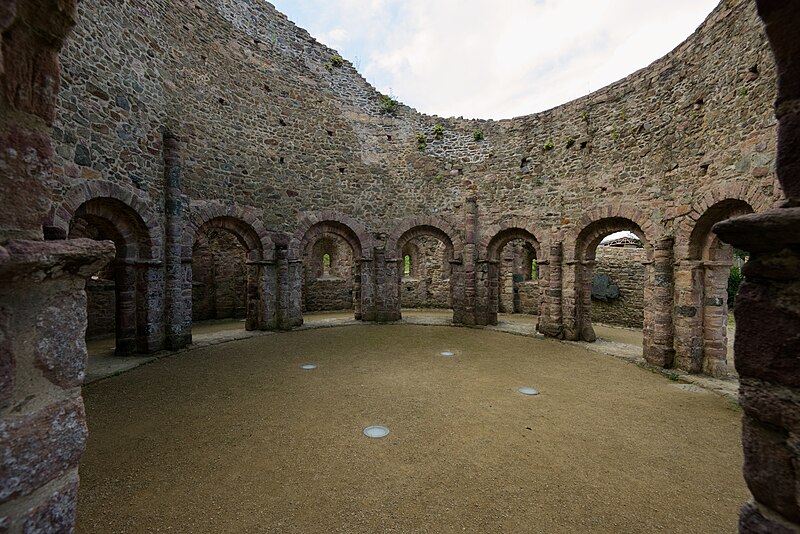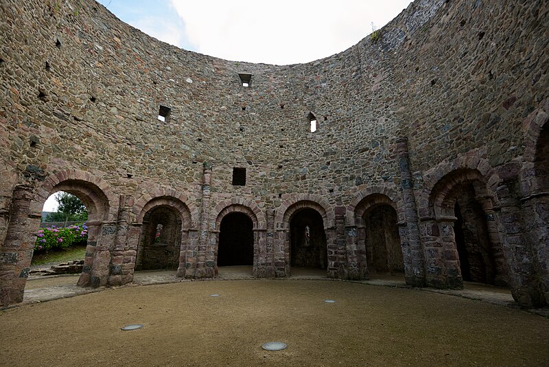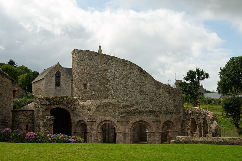 La rotonde dite « temple de Lanleff » est un monument en grès rose dont les vestiges montrent un plan circulaire rare dans la région. L’ensemble originel comportait deux enceintes circulaires concentriques séparées par un déambulatoire ; il ne subsiste aujourd’hui qu’une partie de l’enceinte extérieure, qui conserve deux des trois absidioles. L’enceinte intérieure était découpée en douze arcades plein cintre, légèrement surhaussées, soutenues par douze piliers imposants cantonnés de colonnes engagées aux bases et chapiteaux plats. Douze colonnes adossées aux massifs s’élèvent sous les cintres ; quatre d’entre elles paraissent destinées à reprendre les principales retombées des voûtes. Quelques travées subsistantes illustrent les premières voûtes en berceau. Sur la face antérieure, des gravures à la pointe représentent des figures humaines, animales et des ornements. L’enceinte extérieure présente, entre autres, un œil-de-bœuf et deux étroites ouvertures en plein cintre qui s’évasent vers l’intérieur. Les chapiteaux et les bases offrent un décor sculpté abondant — on en compte plus de 140 — comprenant motifs humains, animaux et géométriques ; l’une des représentations les plus remarquées est dite « Adam pudique ». La singularité du plan a suscité des hypothèses variées sur l’origine et la fonction de l’édifice — temple romain ou gaulois, baptistère mérovingien, église des Templiers — la présence templière n’ayant toutefois jamais été attestée. L’interprétation la plus répandue le considère comme une rotonde mariale d’époque romane, liée à la tradition des plans circulaires évoquant le Saint-Sépulcre. En l’absence de documents précis, la datation repose sur l’analyse stylistique et fait l’objet de débats : certains y voient un caractère archaïque renvoyant à la fin du IXe siècle ou au pré-roman, tandis qu’un nombre significatif de spécialistes privilégient un début du Xe siècle. Le premier document connu évoquant l’église Sainte‑Marie de Lanleff apparaît dans un acte de donation aux moines de Léhon attribué à Trihan de Chatelaudren, daté entre 1061 et 1148. Des annexes ont été ajoutées aux ruines aux XVe et XVIIIe siècles, et au XIXe siècle la rotonde a servi de vestibule à l’église paroissiale Sainte‑Marie. Le monument a retenu l’attention des savants, notamment Prosper Mérimée, et fait l’objet d’une protection au titre des monuments historiques depuis 1889. Une association locale créée en 2008 mène des recherches et propose visites et conférences autour du site.