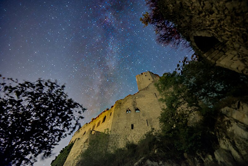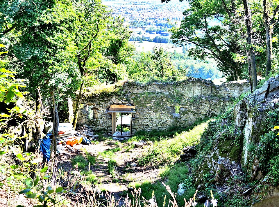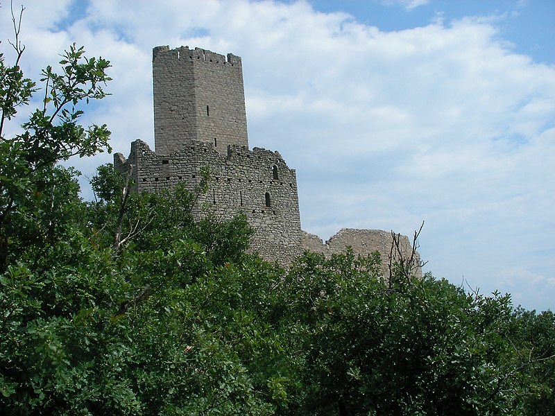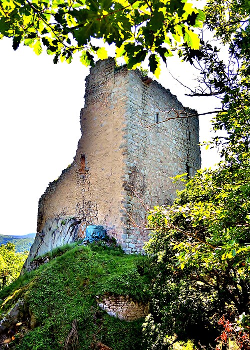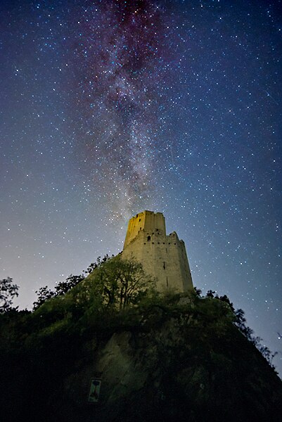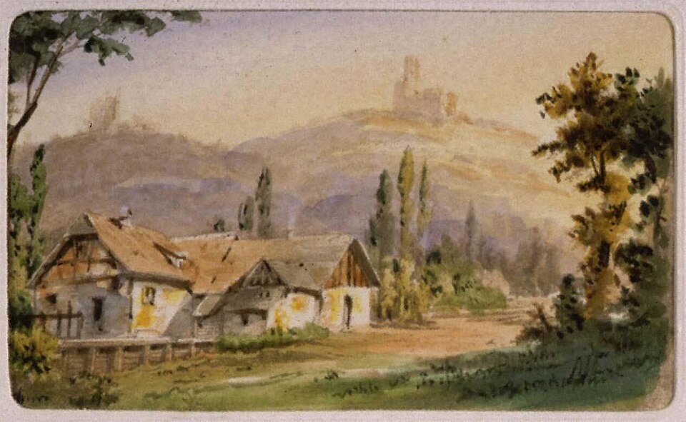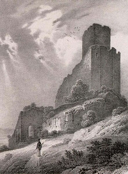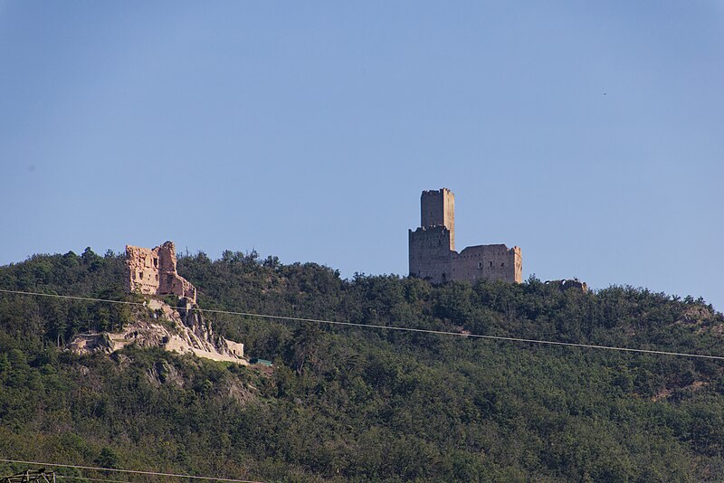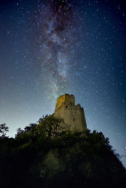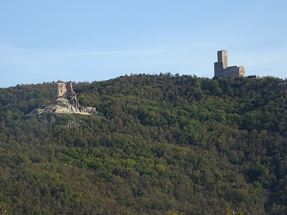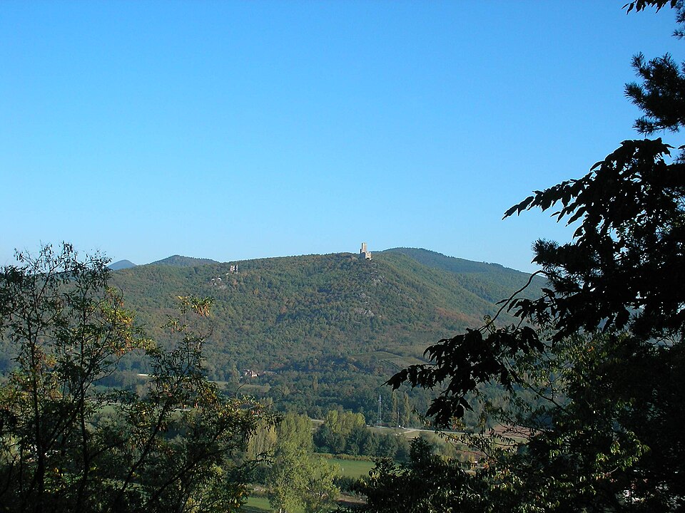 Les ruines des châteaux de l'Ortenbourg et du Ramstein se dressent sur la commune de Scherwiller, dans le Bas‑Rhin. L'Ortenbourg, attribué au comte Werner d'Ortenberg, passa ensuite aux mains des Habsbourg puis d'autres seigneuries et connut restaurations, occupations et démantèlements avant des travaux de consolidation au XIXe siècle. Le Ramstein est un château fort en ruine, établi sur un rocher à l'extrémité sud du Rittersberg, à environ 390 m d'altitude et à quelque 200 m au sud‑ouest de l'Ortenbourg. Il fut construit à la fin du XIIIe siècle par Otto IV d'Ochsenstein, vraisemblablement en lien avec les événements de 1293, et il est attesté dès 1303 parmi les possessions des Habsbourg. Le château changea plusieurs fois de mains au cours du Moyen Âge, passant notamment aux Württemberg, aux Müllenheim et à diverses lignées locales qui y réalisèrent réparations et transformations. Le Ramstein fut saccagé par les Strasbourgeois pendant la guerre de Dachstein, puis remis en état et occupé au moins jusqu'à la première moitié du XVIe siècle. Il fut incendié et démantelé par les Suédois en 1633 et définitivement abandonné par la suite. Les ruines furent acquises et consolidées par des propriétaires privés au XIXe siècle, classées au titre des monuments historiques au XXe siècle et font l'objet, depuis le XXIe siècle, de travaux de dégagement et d'entretien menés aussi par des bénévoles réunis en association. Le toponyme Ramstein, attesté dès 1293, signifie littéralement « rocher des corbeaux », Ram‑ partageant la racine de « corbeau » et ‑stein signifiant « rocher ». Le site occupe les premiers contreforts des Vosges, en bordure de la plaine d'Alsace ; il regarde vers l'Ortenbourg qui domine le versant opposé. Le terrain immédiatement au nord‑est forme une large terrasse relativement plane, ce qui a concentré les défenses sur ce côté, tandis que les flancs sud et ouest bénéficient d'une protection naturelle par forte pente. La plus ancienne mention du château figure dans les Annales du couvent des Dominicains de Colmar, dans une note datée de l'été 1293. L'origine et le rôle du Ramstein ont fait l'objet d'un long débat : de la fin du XIXe siècle à la fin du XXe siècle il fut souvent présenté comme un château de siège destiné à menacer l'Ortenbourg, interprétation remise en cause par des recherches du début du XXIe siècle. Ces études récentes montrent que l'emplacement du Ramstein est mal adapté pour couper les approvisionnements de l'Ortenbourg, que l'argumentation initiale repose largement sur une lecture d'un passage ambigu des Annales, et qu'une arbalète de siège installée au Ramstein n'aurait guère pu atteindre l'Ortenbourg. Le château se compose principalement d'une tour‑habitat imposante posée sur le rocher, d'une basse‑cour en contrebas à l'ouest et d'une enceinte de fausses‑braies garnie de tours. L'accès s'effectuait par l'extrémité orientale du fossé : un assaillant devait franchir une porte, parcourir le fossé vers l'ouest pour atteindre la porte de la basse‑cour, puis traverser le site vers l'est pour gagner la tour‑habitat. La tour‑habitat, quasi rectangulaire d'environ 20 m sur 15 m, reposait directement sur le rocher et dominait le fossé d'une vingtaine de mètres ; elle comptait à l'origine quatre niveaux et fut surélevée de deux étages au XIVe siècle. Aujourd'hui ne subsistent que le mur nord et une partie du mur est de cette tour, les murs ouest et sud ayant presque disparu, l'aspect du mur sud étant partiellement connu par une gravure de 1514. Les niveaux inférieurs, dont la cave et le premier niveau extérieur, ont été en partie comblés ou remaniés et plusieurs ouvertures ont été bouchées au cours des travaux médiévaux. Les maçonneries sont principalement en moellons de granite extraits sur place ; des encadrements et éléments des niveaux supérieurs montrent l'emploi de grès lors de réfections ultérieures et les murs étaient recouverts de crépi. Au XVe siècle, l'ensemble fut entouré de fausses‑braies peu épaisses dotées de tours circulaires et en fer à cheval, comprenant des tours de flanquement et une porte intégrée dans une tour en fer à cheval. Le fossé, en forme de L, isole le château de la crête ; son creusement fournit une grande partie des matériaux de construction et une zone aménagée près de la porte servait à diriger les eaux de ruissellement vers une dépression pouvant servir d'abreuvoir. Les fouilles et travaux de restauration engagés depuis les années 1960, puis intensifiés au XXIe siècle, ont permis de rendre visible le tracé de la basse‑cour, des fausses‑braies et de mieux comprendre l'organisation et les modifications successives du site.