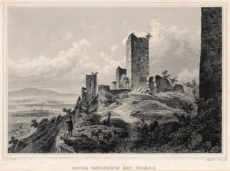 Les ruines du château de Dagsbourg dominent le site de Haut-Eguisheim, sur la commune d’Eguisheim (Haut-Rhin). Le lieu porte des traces d’occupation dès l’époque romaine, notamment un vestige de mur romain intégré à la courtine du Dagsbourg. La première mention du château médiéval date de 1006 : il appartient alors au comte Hugues IV de Nordgau, père du futur pape saint Léon IX. Aux XIIe siècle, le site comprend successivement deux puis trois châteaux, chacun doté d’un donjon et partagé entre plusieurs seigneurs. Le comte de Ferrette contrôle la partie sud, comprenant le Wahlenbourg puis le Weckmund, aujourd’hui situés sur la commune de Husseren-les-Châteaux, tandis que le comte de Dabo possède le Dagsbourg au nord. À la fin du XIIe siècle, le château est en partie détruit puis reconstruit. En 1251, il passe au chapitre de l’évêché de Strasbourg qui le donne ensuite en fief au comte de Ferrette. En 1466, les villes de la décapole s’emparent du site et le détruisent, à l’exception de la chapelle Saint-Pancrace. À la Révolution, le Dagsbourg est acquis par la commune d’Eguisheim; les deux autres châteaux reviennent à la commune de Husseren-les-Châteaux. Des vestiges subsistent : un donjon carré dont deux murs sont écroulés, une partie de la courtine contenant le vestige romain, ainsi que des restes du logis et des écuries. Le château de Dagsbourg est classé au titre des monuments historiques depuis 1840. Le site a fait l’objet d’études et figure dans des ressources et publications spécialisées, notamment la base Mérimée et des travaux de Christian Wilsdorf, ainsi que dans le Dictionnaire des monuments historiques d’Alsace.