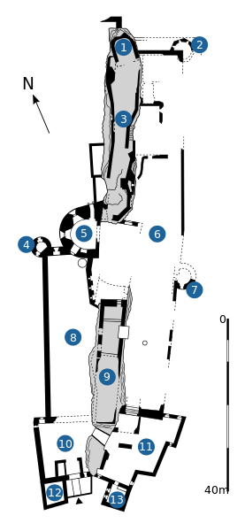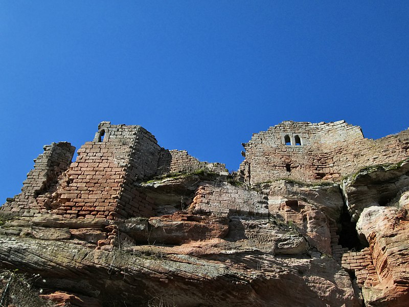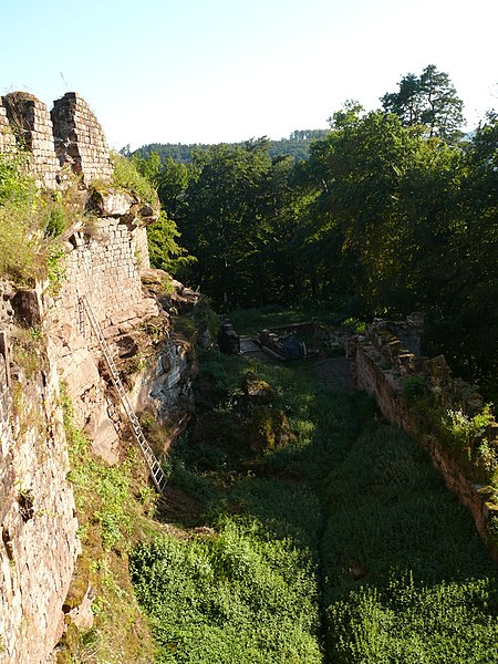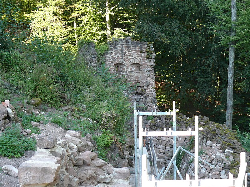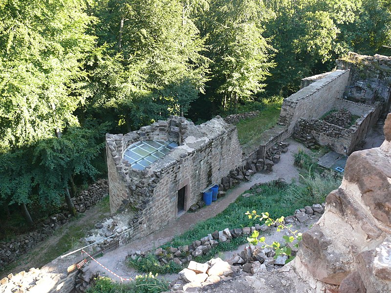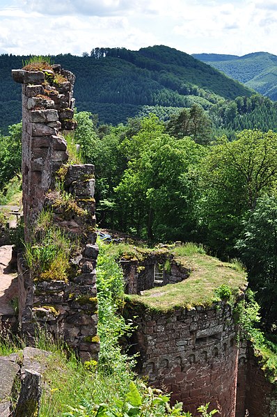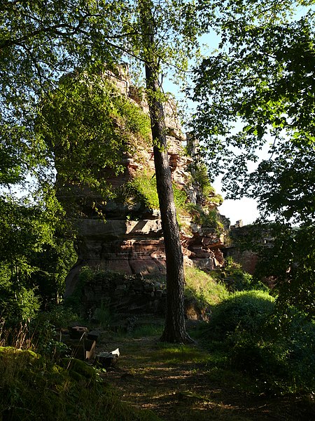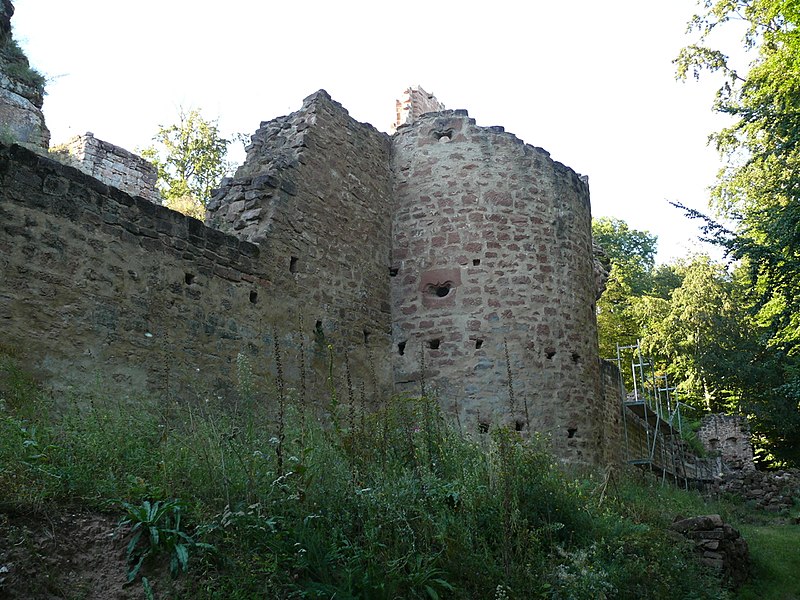 Les ruines du château de Schoeneck sont un ancien château fort en relief, aujourd'hui ruiné, situé sur la commune de Dambach (Bas-Rhin, Grand Est). Il s'élève sur une barre rocheuse à 380 m d'altitude, à 2,6 km au nord-est de Dambach. Probablement édifié à la fin du XIIe ou au début du XIIIe siècle, il aurait été établi sans doute à l'instigation des Hohenstaufen et destiné à chasser les brigands. Le château fut détruit vers 1280, reconstruit en 1286 et cité en 1287 comme propriété de l'évêque de Strasbourg, allié des Habsbourg. En 1301, l'évêque confia la garde à la famille de Lichtenberg et l'inféoda aux Schoeneck. Des travaux de restauration furent entrepris à la fin du XIVe siècle sous l'autorité de l'évêque Frédéric de Blankenheim, avec des travaux poursuivis jusqu'en 1390. Aux XVe et XVIe siècles, la seigneurie connut des changements de main et des conflits : la seigneurie fut accordée en sous-fief aux Durckheim en 1517, alors que le château était délabré, et il fut restauré puis modernisé entre 1545 et 1547 pour faire face aux progrès de l'artillerie. À l'extinction des comtes de Deux-Ponts-Bitche, la seigneurie revint aux comtes de Hanau-Lichtenberg. En 1663 un incendie de forêt l'endommagea ; les Durckheim entreprirent des réparations, mais le château fut finalement démantelé à la fin du XVIIe siècle sur ordre de Louis XIV, au terme d'opérations militaires impliquant des troupes commandées par Monclar et Mélac. Après la Révolution, les vestiges furent achetés par la famille de Dietrich ; la ruine et la forêt appartiennent aujourd'hui à la famille de Pimodan. Les ruines sont inscrites au titre des monuments historiques depuis le 28 décembre 1984. Le site conserve une porte à bretèche ogivale et une grande entrée flanquée de deux bastions carrés du XVIe siècle pourvus de canonnières, la porte étant précédée d'un ancien pont-levis. À l'ouest, une courtine rectiligne ferme la basse-cour ; à l'est, une longue muraille est flanquée de deux tours. On observe aussi les vestiges des logis seigneuriaux, notamment deux fenêtres supérieures étroites à arc en plein cintre et des frises lombardes à l'extérieur de l'enceinte occidentale. Les constructeurs ont employé du grès local et un grès plus fin provenant d'une carrière située à une quinzaine de kilomètres ; un emplacement de monte-charge est encore visible sur le site. Des travaux de consolidation sont attestés à plusieurs reprises et l'association Cun Ulmer Grün mène depuis 2000 des consolidations et des fouilles. Des interventions archéologiques ont été réalisées depuis la fin du XIXe siècle : des fouilles limitées en 1881, des campagnes en 1981 dirigées par Maurice Frey qui dégagèrent l'entrée et mirent au jour un linteau daté de 1676, des fouilles en 1983 révélant notamment une forge avec son évier, puis des campagnes en 2003 autour de la tour octogonale qui ont mis en évidence une stratigraphie notable et permis de trouver une pièce de 1656 dans une couche d'incendie, confirmant l'événement de 1663. L'accès se fait entre Obersteinbach et le Wineckerthal par la D53, en prenant le chemin menant à la maison forestière du Fischerackerhof puis le sentier du Club vosgien Henri-Mellon balisé d'un triangle vert, ou, plus loin et moins raide, le chemin balisé d'un triangle rouge.
