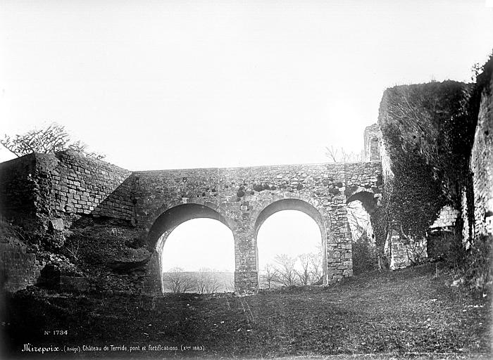 Les ruines du château dit de Terride se dressent sur une colline au nord de Mirepoix (Ariège), à moins d'un kilomètre à vol d'oiseau de la ville, au-delà de l'Hers-vif et de la RD 119, à l'est du hameau de Bartas; le sommet s'élève à 356 m et le site est une propriété privée. Le château a pris le nom de Terride après le mariage en 1563 de Jean VI de Lévis, seigneur de Mirepoix, avec Catherine Ursule de Lomagne, qui apporta en dot la baronnie de Terride. En 1593, Antoine Guillaume de Lévis reçut de sa mère la baronnie à la condition d'en prendre le nom et les armes, mais cette donation fut annulée lorsque, par succession, il devint seigneur de Mirepoix. Catherine Ursule de Lomagne donna alors la baronnie à un cadet, Jean de Lévis, seigneur de Roquefort, appelé comte de Terride; il mourut au château de Mirepoix en 1664.