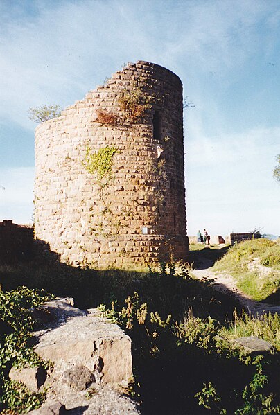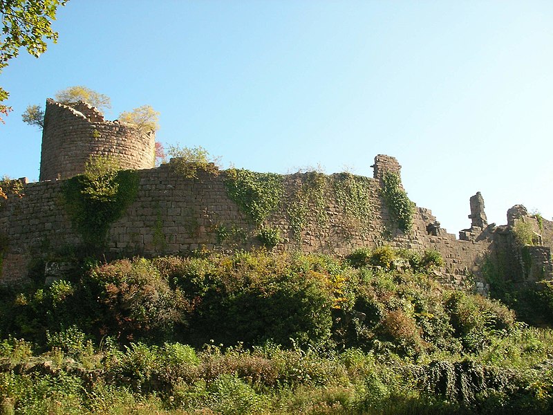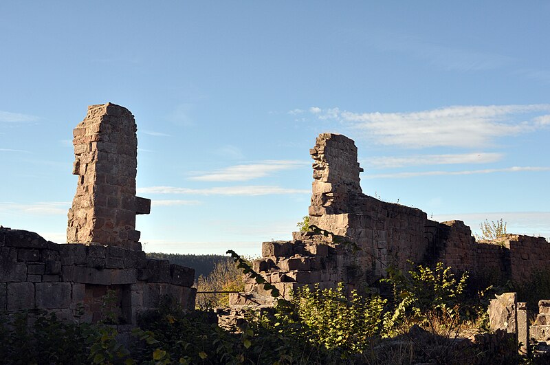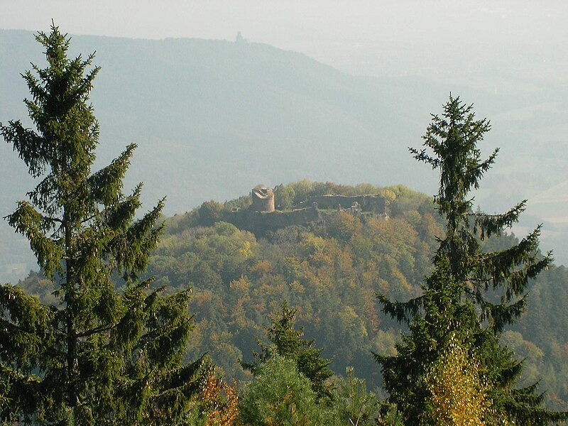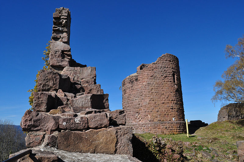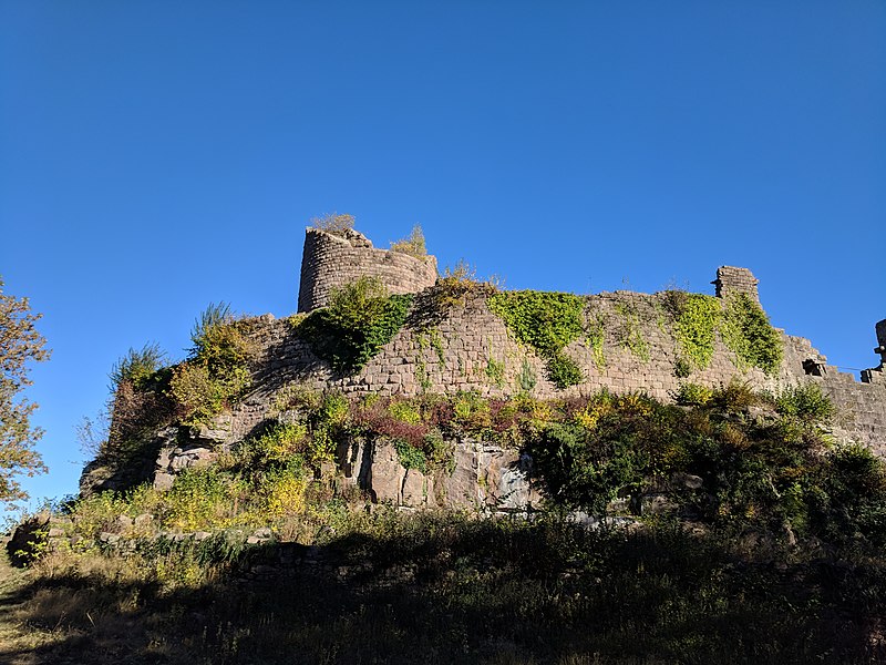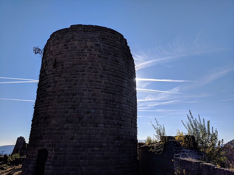 Le château fort du Frankenbourg, en ruine, occupe le sommet boisé du Schlossberg, entre Neubois et La Vancelle, dans le sud du Bas-Rhin. Il est implanté sur un site occupé dès l'Âge du bronze et marqué par des traces celtiques et romaines, notamment des monnaies de Constantin, une statuette et une hache. L'histoire et l'architecture du château restent difficiles à établir : une dizaine de types de maçonneries coexistent sur le site. L'édifice a vraisemblablement été élevé au milieu du XIIe siècle, sans doute par la famille comtale éponyme, elle-même liée à la lignée des comtes de Sarrebruck et des Werd. Plusieurs membres nommés Sigebert apparaissent dans les sources médiévales et la seigneurie semble avoir été tenue en fief de l'évêché de Strasbourg. Le donjon, daté du troisième quart du XIIIe siècle, a probablement été construit par Henri-Sigesbert V de Werde. La fortune de la famille décline au XIVe siècle et, vers 1336, le château est engagé à la famille de Mullenheim. En 1359 les comtes d'Oettingen vendent leurs dernières possessions, dont le Frankenbourg, à l'évêque de Strasbourg, qui multiplie ensuite les mises en gage. Entre 1393 et 1489 se succèdent de nombreux engagistes, parmi lesquels Johann von Leiningen-Rixingen, les frères Zorn, la famille de Lützelstein, Hans von Uttenheim zu Ramstein, Claus Bock, Jacob von Hohenstein, la ville de Sélestat, la famille Wurmser et le Grand Chapitre de la cathédrale de Strasbourg. À partir de 1489, le Grand Chapitre devient l'unique engagiste jusqu'en 1789. Le château est frappé par un incendie en 1582 et, malgré des restaurations, il est déjà en mauvais état au début du XVIIe siècle. Des campagnes de nettoyage et de consolidation menées par des bénévoles dans les années 1970 et 1980, puis des travaux à partir de 1981, ont modifié et stabilisé l'aspect des ruines, en particulier celui du donjon. Le Schlossberg culmine à 703 mètres ; de son sommet on domine la plaine d'Alsace, la vallée de Villé et la vallée de la Lièpvrette, et l'emplacement contrôlait autrefois la route transvosgienne vers la Lorraine. L'accès se fait à pied depuis La Vancelle, Neubois ou Lièpvre ; des routes bitumées permettent de se rapprocher du site mais leur ouverture à la circulation est limitée selon la saison et certains dimanches, et il reste une marche d'environ dix minutes depuis le parking du Schlossplatz. Les ruines forment une vaste enceinte rectangulaire bordée de murs hauts de 6 à 10 mètres ; la porte, côté nord, regarde la plaine d'Alsace. Le donjon, bien conservé, mesure environ 11 mètres de haut et présente des murs d'une épaisseur de l'ordre de 4 mètres ainsi qu'une voûte en briques. À l'intérieur, côté sud, un escalier en pierre de 20 à 25 marches, adossé au mur, mène vraisemblablement au premier étage ; près de la porte se trouve une petite croisée à fleur de terre offrant une vue sur la Lièpvrette. À flanc de montagne se développe le « mur païen », enceinte protohistorique située environ 150 mètres sous les derniers murs du château, principalement sur la pente ouest. Ce mur est construit en gros blocs assemblés par des clés à queue d'aronde ; son épaisseur est indiquée à 1,80 m, sa largeur à 0,60–0,90 m et sa hauteur à 0,50–0,70 m. La datation du mur fait l'objet de débats : des spécialistes le rattachent à la fin de l'Âge du fer (La Tène) en raison de mobilier gaulois et d'un trésor monétaire mis au jour, d'autres évoquent une origine gallo-romaine ou mérovingienne en s'appuyant sur des monnaies et des restes de bois. Au Moyen Âge, de nombreuses pierres de cette enceinte protohistorique ont probablement été réemployées pour construire le château. Le vaste patrimoine du Frankenbourg passe progressivement aux chanoines du Grand Chapitre et à la ville de Sélestat, puis le Grand Chapitre devient propriétaire effectif jusqu'à la Révolution ; la couronne de protection des ruines commence à la fin du XIXe siècle, avec un classement partiel et ultérieur de l'enceinte protohistorique. Depuis plusieurs décennies, des associations locales — Club Vosgien de Villé, Société d’Histoire du Val de Villé, Scouts et Guides et, depuis 2013, l'association « Les Mains d'Or du Frankenbourg » — entretiennent et valorisent le site.