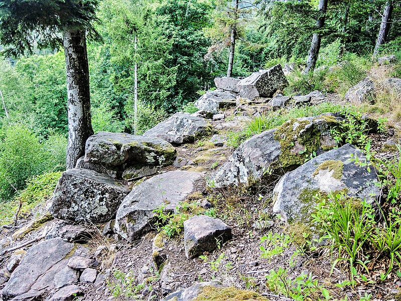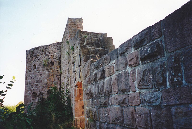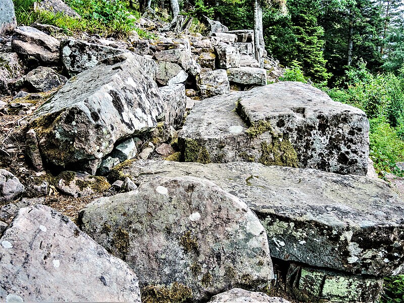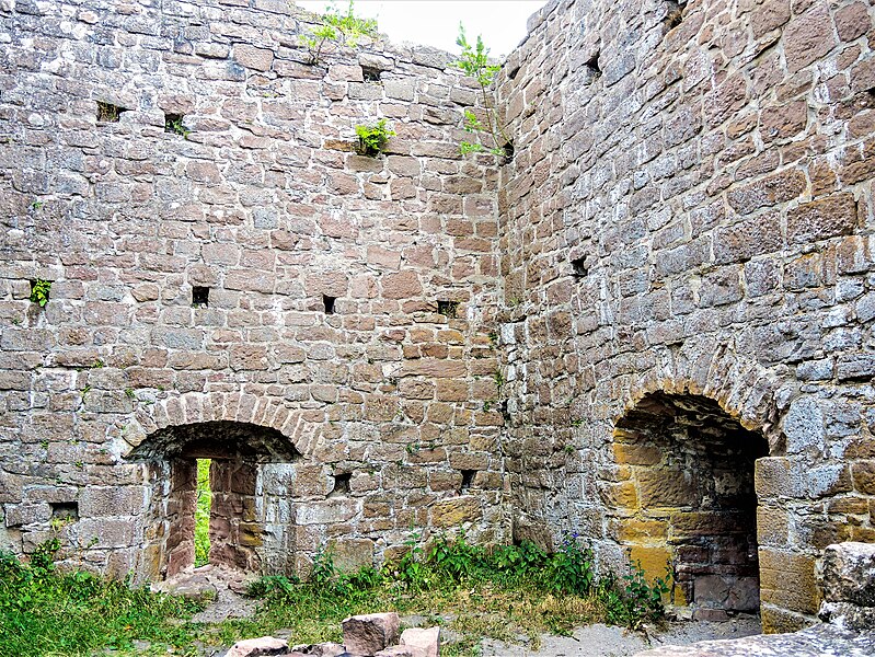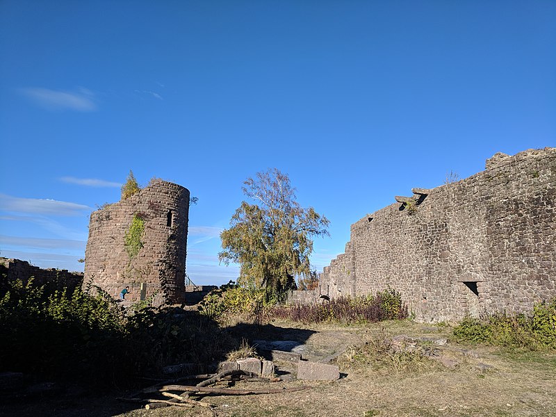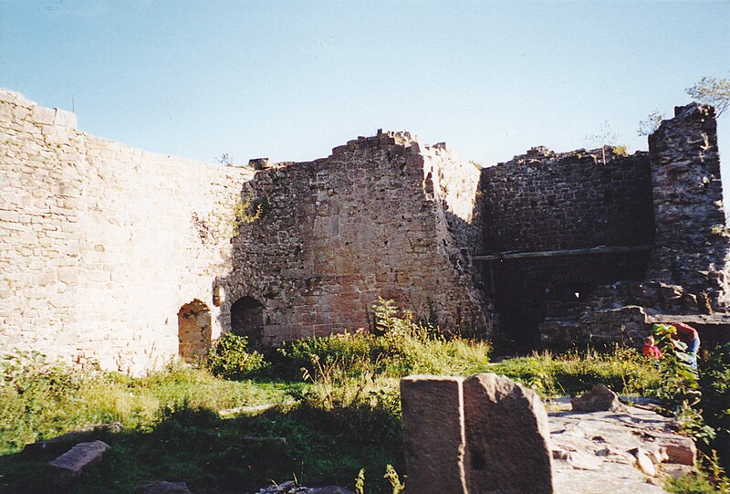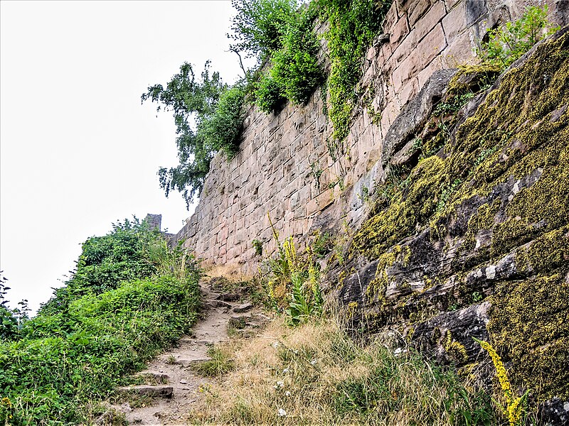 Le château fort du Frankenbourg, en ruine, occupe le sommet boisé du Schlossberg, entre Neubois et La Vancelle, dans le sud du Bas-Rhin. Il est implanté sur un site occupé dès l'Âge du bronze et marqué par des traces celtiques et romaines, notamment des monnaies de Constantin, une statuette et une hache. L'histoire et l'architecture du château restent difficiles à établir : une dizaine de types de maçonneries coexistent sur le site. L'édifice a vraisemblablement été élevé au milieu du XIIe siècle, sans doute par la famille comtale éponyme, elle-même liée à la lignée des comtes de Sarrebruck et des Werd. Plusieurs membres nommés Sigebert apparaissent dans les sources médiévales et la seigneurie semble avoir été tenue en fief de l'évêché de Strasbourg. Le donjon, daté du troisième quart du XIIIe siècle, a probablement été construit par Henri-Sigesbert V de Werde. La fortune de la famille décline au XIVe siècle et, vers 1336, le château est engagé à la famille de Mullenheim. En 1359 les comtes d'Oettingen vendent leurs dernières possessions, dont le Frankenbourg, à l'évêque de Strasbourg, qui multiplie ensuite les mises en gage. Entre 1393 et 1489 se succèdent de nombreux engagistes, parmi lesquels Johann von Leiningen-Rixingen, les frères Zorn, la famille de Lützelstein, Hans von Uttenheim zu Ramstein, Claus Bock, Jacob von Hohenstein, la ville de Sélestat, la famille Wurmser et le Grand Chapitre de la cathédrale de Strasbourg. À partir de 1489, le Grand Chapitre devient l'unique engagiste jusqu'en 1789. Le château est frappé par un incendie en 1582 et, malgré des restaurations, il est déjà en mauvais état au début du XVIIe siècle. Des campagnes de nettoyage et de consolidation menées par des bénévoles dans les années 1970 et 1980, puis des travaux à partir de 1981, ont modifié et stabilisé l'aspect des ruines, en particulier celui du donjon. Le Schlossberg culmine à 703 mètres ; de son sommet on domine la plaine d'Alsace, la vallée de Villé et la vallée de la Lièpvrette, et l'emplacement contrôlait autrefois la route transvosgienne vers la Lorraine. L'accès se fait à pied depuis La Vancelle, Neubois ou Lièpvre ; des routes bitumées permettent de se rapprocher du site mais leur ouverture à la circulation est limitée selon la saison et certains dimanches, et il reste une marche d'environ dix minutes depuis le parking du Schlossplatz. Les ruines forment une vaste enceinte rectangulaire bordée de murs hauts de 6 à 10 mètres ; la porte, côté nord, regarde la plaine d'Alsace. Le donjon, bien conservé, mesure environ 11 mètres de haut et présente des murs d'une épaisseur de l'ordre de 4 mètres ainsi qu'une voûte en briques. À l'intérieur, côté sud, un escalier en pierre de 20 à 25 marches, adossé au mur, mène vraisemblablement au premier étage ; près de la porte se trouve une petite croisée à fleur de terre offrant une vue sur la Lièpvrette. À flanc de montagne se développe le « mur païen », enceinte protohistorique située environ 150 mètres sous les derniers murs du château, principalement sur la pente ouest. Ce mur est construit en gros blocs assemblés par des clés à queue d'aronde ; son épaisseur est indiquée à 1,80 m, sa largeur à 0,60–0,90 m et sa hauteur à 0,50–0,70 m. La datation du mur fait l'objet de débats : des spécialistes le rattachent à la fin de l'Âge du fer (La Tène) en raison de mobilier gaulois et d'un trésor monétaire mis au jour, d'autres évoquent une origine gallo-romaine ou mérovingienne en s'appuyant sur des monnaies et des restes de bois. Au Moyen Âge, de nombreuses pierres de cette enceinte protohistorique ont probablement été réemployées pour construire le château. Le vaste patrimoine du Frankenbourg passe progressivement aux chanoines du Grand Chapitre et à la ville de Sélestat, puis le Grand Chapitre devient propriétaire effectif jusqu'à la Révolution ; la couronne de protection des ruines commence à la fin du XIXe siècle, avec un classement partiel et ultérieur de l'enceinte protohistorique. Depuis plusieurs décennies, des associations locales — Club Vosgien de Villé, Société d’Histoire du Val de Villé, Scouts et Guides et, depuis 2013, l'association « Les Mains d'Or du Frankenbourg » — entretiennent et valorisent le site.