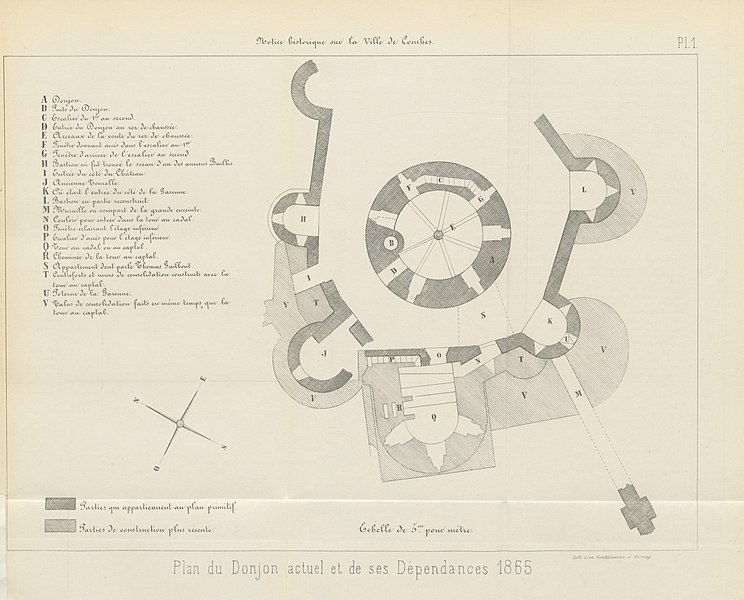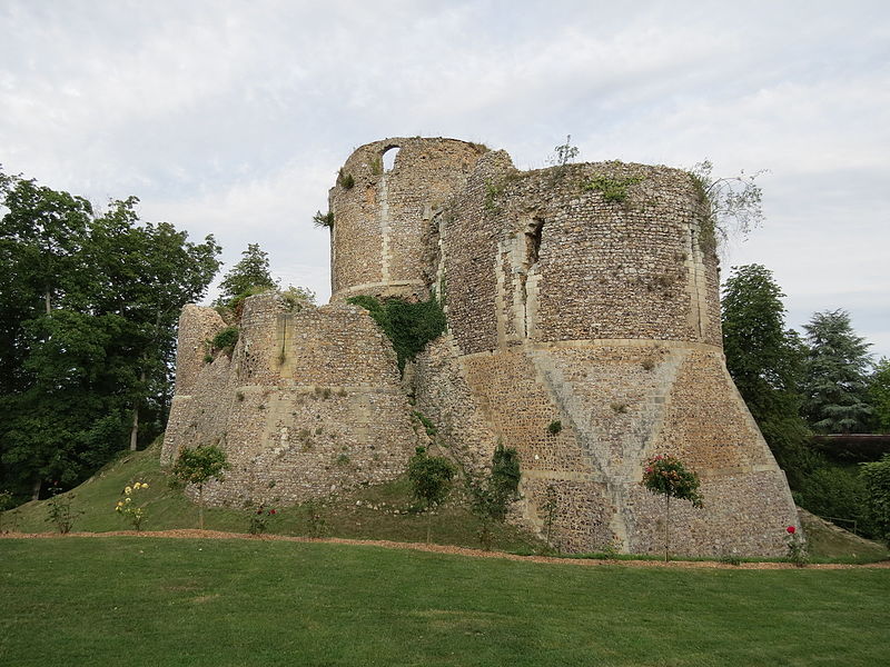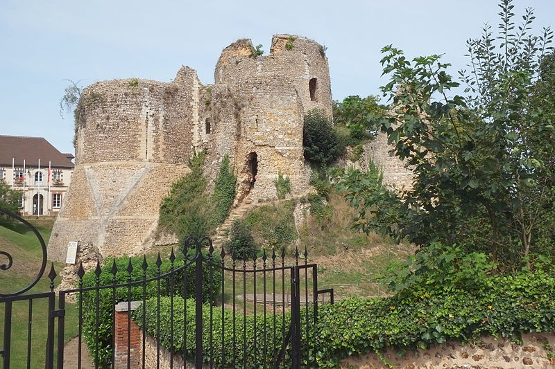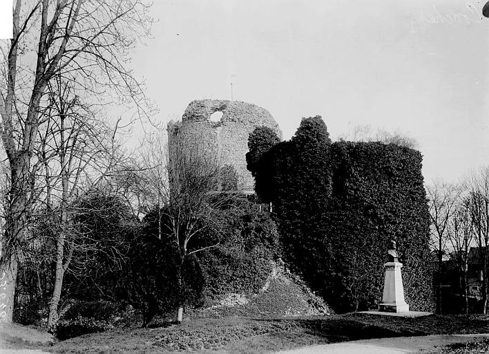Le donjon du XIe siècle est bâti sur une motte, au centre d’une ancienne basse-cour qui abritait un enclos paroissial avec une église et probablement des habitations. La basse-cour, aujourd’hui transformée en jardin public, ne conserve que l’entrée, enfermée entre des maisons à pans de bois. La tour possédait des murs larges de 2,60 mètres et au moins trois étages. Le donjon cylindrique, entouré d’une chemise et flanqué à ses angles de tours semi‑circulaires très rapprochées, a été élevé par Roger VI de Tosny vers 1175 et préfigure les dispositions de Château‑Gaillard. Les remparts et le donjon ont été restaurés entre 2007 et 2016 par des bénévoles de l’association Chantiers Histoire et Architecture Médiévales.
