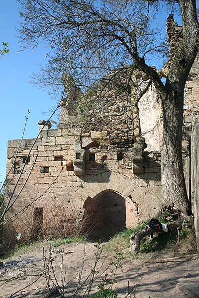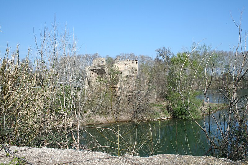 Une lettre du pape Grégoire X au XIIIe siècle félicite l'évêque Pierre Bérenger de Montbrun pour la construction de quatre moulins sur l'Hérault, à Agde, Bessan, Florensac et Saint‑Thibéry, ce qui situe l'édification entre 1271 et 1276. Le bâtiment qui relie les deux éperons est postérieur et ne date que du XIXe siècle. Le bâtiment nord‑ouest a un plan rectangulaire prolongé vers l'amont par un éperon triangulaire haut de quatre mètres. La partie rectangulaire est divisée en deux par un grand arc brisé dont l'extrados porte un muraillement appareillé. Le plancher aujourd'hui disparu du premier étage reposait sur ce mur et cet arc, sur un autre mur également établi sur arc brisé à la racine de l'éperon, et latéralement sur de puissants bandeaux en quart‑de‑rond. Sous ces bandeaux, chaque paroi présente deux arcs longitudinaux ; tous ces arcs sont brisés. Le deuxième étage repose d'une part sur un grand arc brisé situé au‑dessus du premier et d'autre part sur un encorbellement continu en quart‑de‑rond qui forme un chemin de ronde. Cet encorbellement permettait la circulation et desservait à la fois les bretèches latérales du mur de fond et les archères pratiquées dans les flancs. Un petit escalier en vis est logé contre la pointe de l'éperon. L'unique porte d'entrée s'ouvre en arc brisé ; de chaque côté, à une assise au‑dessus de l'extrados, des corbeaux soutenaient une bretèche en arc brisé dont les côtés reçoivent plus haut les retombées de deux arcs brisés. Les larges mâchicoulis ménagés en arrière de ces arcs permettaient de défendre les approches de la porte centrale. Le second bâtiment présente une apparence proche du premier mais diffère par ses mensurations et sa structure, ce qui laisse penser qu'il n'appartient pas à la même campagne ; son aménagement intérieur paraît moins développé, sa porte est en arc brisé et ses bretèches ont disparu. À une époque plus récente, l'éperon a été surmonté d'une construction encorbelée — une salle de guet — que la présence de longues archères permet d'attribuer au XIVe siècle ; la partie supérieure est en revanche visiblement moderne.
