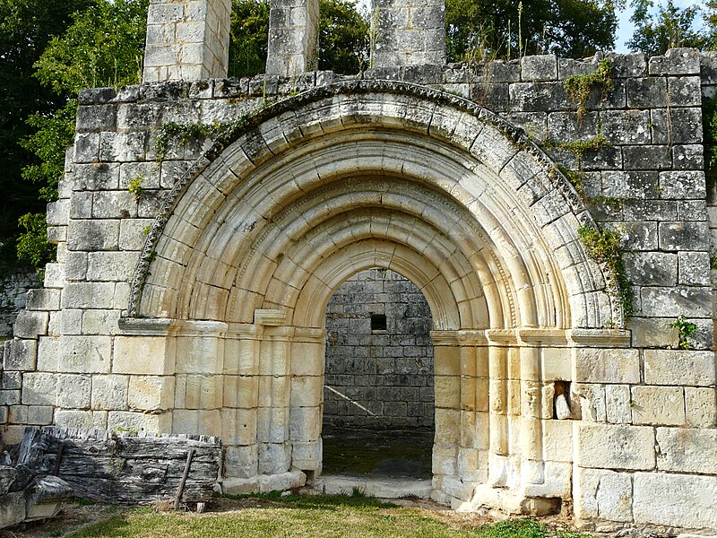 Petit prieuré rural à chevet plat, caractérisé par des arcades en plein cintre et un porche lui aussi en plein cintre, orné de colonnettes et de pointes de diamant.