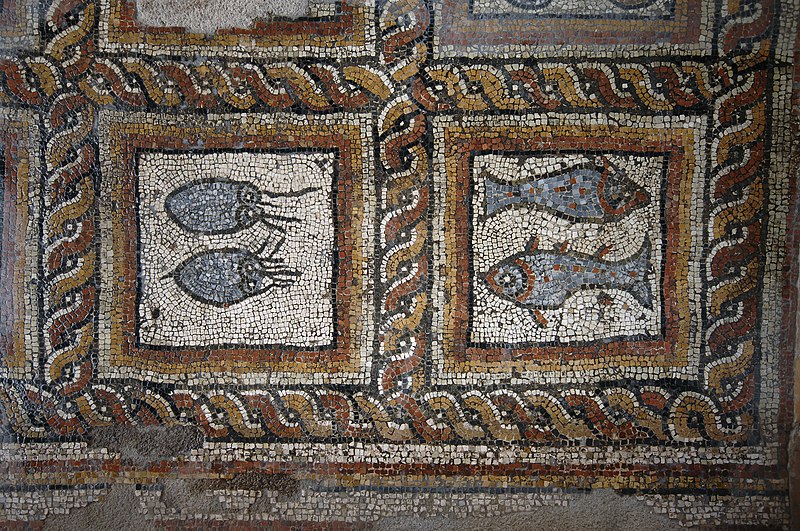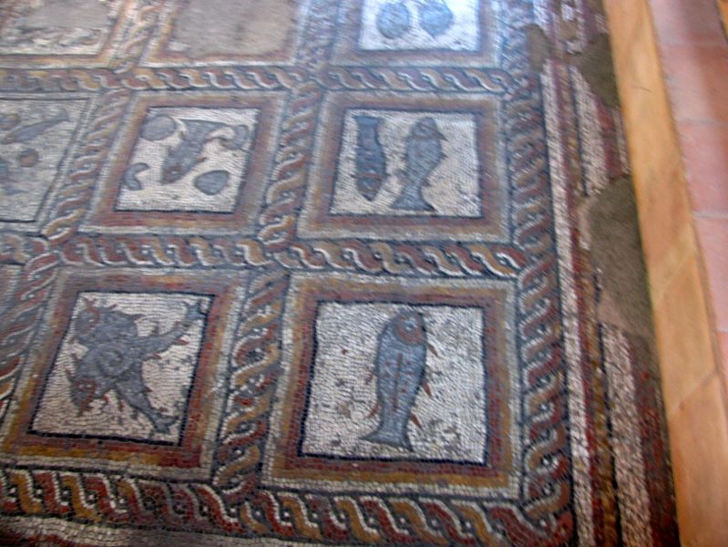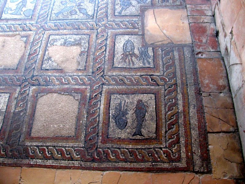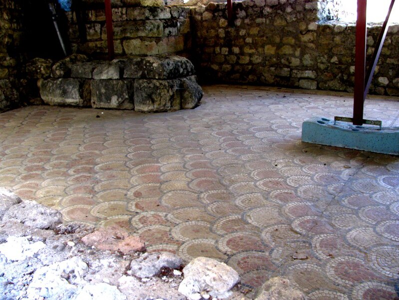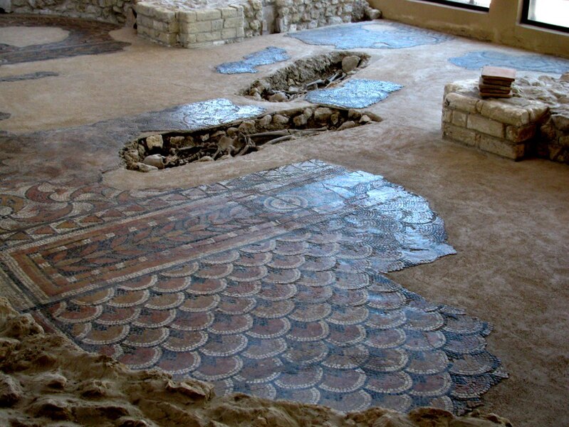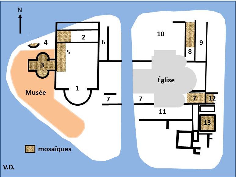 Les vestiges visibles occupent plusieurs terrasses sur une surface d’environ 80 sur 56 mètres, partagée par la voie menant à l’église ; l’église occupe la moitié est centrale et le bâtiment du musée borde les côtés ouest et sud-ouest. Les mosaïques conservées, réalisées en pierre locale et en tesselles de terre cuite, sont présentées in situ sous abris.