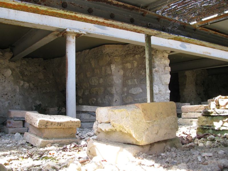 À 300 mètres à l’est du bourg, la mise au jour en 1936 de deux cuves carrées conduisit d’abord à les identifier comme éléments de meunerie, puis, après comparaison avec d’autres découvertes, Jacques Coupry les interpréta comme des cuves viticoles de foulage, dépendances probables de la villa. Les remblais contenant une assiette à marli de type DSP et une épaule d’amphore de Gaza datée du Ve ou du VIe siècle témoignent d’une occupation tardive et d’échanges avec l’Orient.