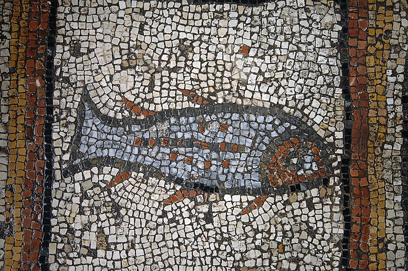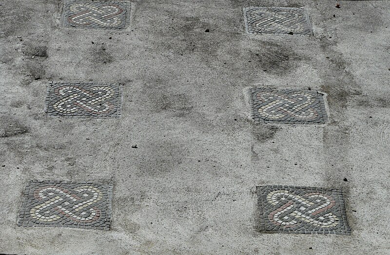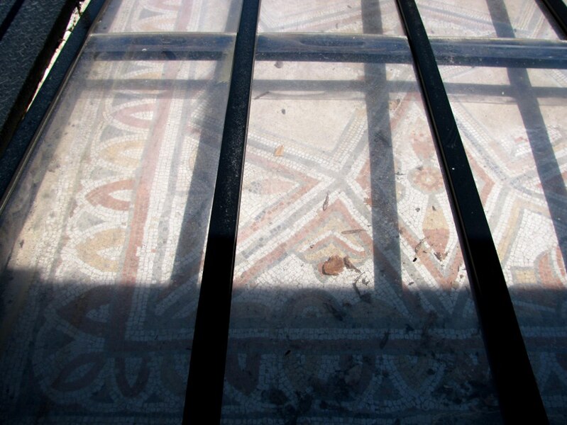 La partie centrale correspond à un espace dégagé, cour ou jardin, entouré de galeries alignées nord-sud et est-ouest, dont les galeries ouest et est se prolongent au-delà de la route moderne ; la galerie orientale conserve des fragments de pavement et le stylobate d’une colonnade, tandis que la galerie sud, en partie recouverte par l’église, menait aux thermes privés à l’ouest et présentait un sol en mosaïque à motif en écailles.