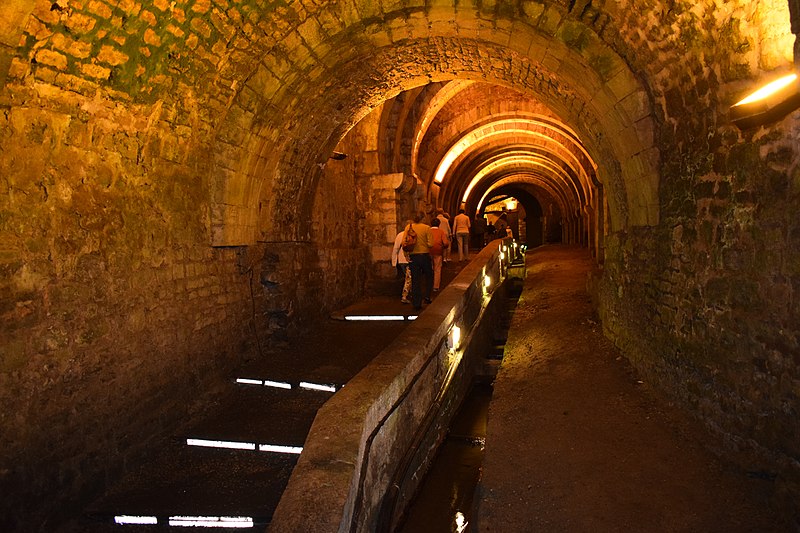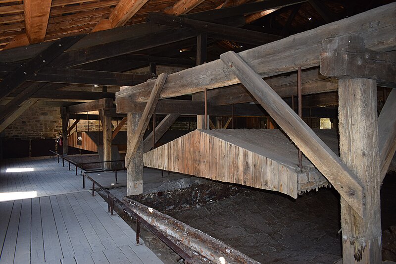 Reconstruite en pierre au début du XVe siècle, la grande saunerie de Salins-les-Bains illustre un site industriel ancien implanté en milieu urbain et jadis au cœur des rivalités entre le Saint-Empire, la Bourgogne et le royaume de France. Protégée autrefois par une enceinte fortifiée aujourd’hui démantelée, elle regroupait en surface des ateliers et bâtiments destinés au stockage de la saumure, au traitement du sel (évaporation, égouttage, séchage, conditionnement) et à l’entretien des équipements (forge, tonnellerie, menuiserie), ainsi que bureaux, logements d’officiers, maison du directeur, chapelle, salle de justice et prison. Sous la cour se trouvent deux salles voûtées, les puits d’Amont et à Grès, reliées par une galerie souterraine servant au captage et à la remontée des eaux salées. L’introduction du procédé du sondage à partir de 1832 a permis de traiter des eaux saturées en sel. La saline a poursuivi son exploitation jusqu’en 1962 sans connaître de modernisations majeures. Malgré des destructions importantes lors d’un incendie en 1825 et pendant la Seconde Guerre mondiale, elle a conservé des installations (sondage, moteur hydraulique, poêle d’évaporation) qui permettent de comprendre le fonctionnement d’une saline traditionnelle. L’atelier de fabrication et la galerie souterraine sont ouverts au public depuis 1968. D’autres bâtiments accueillent aujourd’hui un casino, l’office de tourisme, le musée municipal et le siège de l’association des Musées des Techniques et Cultures comtoises, et des espaces libres ont été aménagés en terrains de tennis et en jardin public. La saline continue de fournir les eaux salées à l’établissement thermal de la ville. L’activité de saunerie est attestée depuis le Ve siècle et l’exploitation du sel à Salins remonte au Néolithique, faisant de ces salines, avec celles de Lons-le-Saunier, l’un des sites de production de sel ignigène parmi les plus anciens connus. En 1115 coexistaient une petite saline, le puits à Muire, et la grande saunerie autour du puits d’Amont ; le puits à Grès fut foncé entre 1224 et 1248 et relié par une galerie au puits d’Amont. Après des incendies en 1352 et 1409, les bâtiments de la grande saline furent reconstruits en pierre au début du XVe siècle et dotés d’éléments fortifiés, notamment les tours de Flore, de Reculot et du Perroquet. L’incendie de 1825 détruisit une partie des bâtiments qui ne furent pas tous reconstruits, à l’exception d’une porte monumentale vers 1830 ; la petite saline était hors service en 1832 et fut détruite vers 1853 pour laisser place à un établissement thermal entièrement rebâti en 1935. Les améliorations techniques du milieu du XIXe siècle, comme les poêles rectangulaires chauffés au charbon et la technique du sondage, ont accru la production, passée de 36 000 quintaux en 1804 à 60 000 en 1864. L’exploitation fonctionna de façon intermittente entre 1940 et 1962 avant sa fermeture définitive, et de nombreux bâtiments avaient été rasés durant la Seconde Guerre mondiale. La commune acquit les terrains en 1966 ; la plupart des bâtiments subsistants ont été protégés au titre des Monuments historiques et la galerie souterraine et ses installations ont été classées en 1971. Le nombre de poêles, de roues hydrauliques, de trous de sonde et d’ouvriers a varié sensiblement entre le XVIIIe et le XXe siècle selon les périodes d’exploitation. La saumure est encore captée dans les souterrains et, concentrée à environ 330 grammes de sel par litre, elle est aujourd’hui utilisée notamment pour le salage des routes en hiver tout en alimentant les thermes. Depuis 1854 l’eau du puits à Muyre alimente les premiers thermes de Salins-les-Bains ; en 1994 l’eau du puits des Cordeliers y a été raccordée. Le site a été inscrit sur la liste indicative du patrimoine mondial en 2002 et reconnu patrimoine mondial par l’UNESCO le 27 juin 2009 en extension de la saline royale d’Arc-et-Senans. Aménagée et restaurée pour l’interprétation, la saline, dotée d’un musée du Sel depuis mai 2009, présente la salle des poêles, le magasin des sels, l’ancienne maison du grand puits, des galeries et des mécanismes de pompage encore en état de marche, et accueille environ 70 000 visiteurs chaque année.