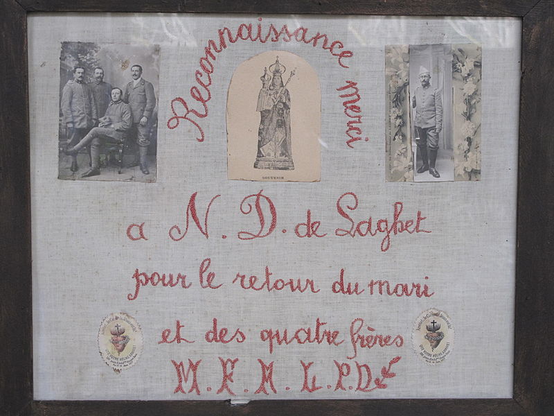 Laghet est un hameau de la commune de La Trinité, dans les Alpes-Maritimes en Provence-Alpes-Côte d'Azur. Dès le XVIIe siècle, une chapelle dédiée à la Vierge y est liée à des guérisons miraculeuses ; aujourd'hui le sanctuaire Notre-Dame de Laghet, le plus important sanctuaire marial du diocèse de Nice, est aussi l'un des plus fréquentés en France. Le toponyme vient de laguet, « petit lac » ou « étang » ; la graphie italienne gh explique la forme Laghet, tandis qu'en langue niçoise on dit Laguet et les habitants sont appelés lu Aguetan ou lu Valounié. En 1045, Raimbaud de Nice donne le castrum de Lacs à l'abbaye Saint-Victor de Marseille ; une charte mentionne alors une source aménagée en fontaine et les moines ont sans doute édifié une chapelle. Dès le XVe siècle, des textes signalent une chapelle servant de lieu de pèlerinage pour les habitants de La Turbie, d'Èze et de Villefranche. En 1652, dans la modeste chapelle du vallon de Laghet, la Vierge aurait répondu aux prières par plusieurs miracles, ce qui provoqua une enquête diocésaine lancée par l'évêque Désiré Pallétis en 1653. Trente-six miracles furent enregistrés et vingt-deux authentifiés après examen par une commission de théologiens ; la plupart concernaient des maladies graves supposées incurables et se caractérisaient par une guérison immédiate et définitive attestée par des témoins. La nouvelle se répandit rapidement : le capucin François de Sestri publia en 1654 une notice en vieil italien sur les miracles et les pèlerinages, le premier pèlerinage officiel eut lieu le 25 avril 1654 en présence des syndics de Nice, et l'historien Pierre Gioffredo relata ces premiers événements. Le sanctuaire actuel fut élevé sur une éminence rocheuse entre 1653 et 1655 ; les ex-voto commencèrent alors à couvrir ses murs et la composition architecturale permet d'attribuer l'édifice à l'ingénieur niçois Jean-André Guibert. L'église, orientée vers l'est, présente un décor baroque avec un clocher à bulbe ; elle comprend une nef unique rectangulaire en trois travées, un chœur à chevet plat, une voûte en berceau peinte en grisaille et des stucs abondants qui ornent l'architrave, l'arc triomphal et les voûtes des chapelles latérales. Notre-Dame de Laghet fut ouverte le 21 novembre 1656. En 1674, des Carmes déchaux venus de Turin, installés par l'évêque Henri Provana de Leyni, construisirent un couvent autour d'un cloître ; l'église fut consacrée en 1768 par l'évêque Henri Astesan. En 1792, les troupes révolutionnaires pillèrent le sanctuaire ; il put être rendu au culte dès 1796 et les Carmes y demeurèrent jusqu'au 13 août 1903, date de la promulgation de la loi sur les Congrégations. De 1666 à 1849 les ducs de Savoie firent régulièrement pèlerinage à Laghet ; le roi de Sardaigne Charles-Emmanuel III visita le sanctuaire après l'achèvement des travaux, Charles-Félix de Savoie s'y rendit en 1826 avec la reine Marie-Christine, et le roi Charles-Albert s'y arrêta sur le chemin de l'exil le 26 mars 1849. Des campagnes de restauration et d'embellissement eurent lieu en 1816, 1838 et 1887, cette dernière après des dommages causés par un séisme et la foudre au clocher. Le sanctuaire s'est enrichi au fil du temps de la crypte de Sainte-Thérèse et de la « Chapelle de la Vierge noire », présentée comme une reconstitution de la chapelle primitive au rez-de-jardin de l'aile ouest. Le Couronnement de la Vierge de Laghet se déroula du 19 au 22 avril 1900 ; le chanoine Dalbera racheta l'église et les locaux en 1907, qui abritèrent alors le petit séminaire diocésain avant d'être transformés en maison de retraites spirituelles en 1930. Une restauration conduite par les Monuments historiques eut lieu en 1964 et une nouvelle campagne de travaux fut engagée à partir de 1984 pour harmoniser les enduits colorés des façades et du clocher. Depuis 1978, l'accueil, l'animation spirituelle et l'hôtellerie du sanctuaire sont assurés par les bénédictines du Sacré-Cœur de Montmartre, établies au prieuré de Notre-Dame de Laghet. Plusieurs petits ermitages et les moines qui s'y retirent sont rattachés au sanctuaire ; reconnus par l'institution catholique, ils restent volontairement confidentiels pour préserver leur solitude face au tourisme et à la proximité urbaine. De 2002 à 2012, le séminaire de Laghet forma les futurs prêtres des diocèses de Nice, Monaco et Vintimille avant d'être transféré à Aix-en-Provence ; depuis 2019 trois prêtres Missionnaires de Notre-Dame de la Salette sont présents à Laghet, dont le recteur. La statue en bois polychrome de la Vierge à l'Enfant, placée dans la niche au-dessus du maître-autel, date de 1625 et est l'œuvre du sculpteur parisien Pierre Moïse ; appelée Vierge des Prodiges, elle fut restaurée par le peintre niçois Giovanni Rocca et offerte par le prêtre Don Giacomo Fighiera en juin 1652. Les inventaires mentionnent un important trousseau de robes et de manteaux, souvent en satin ou en soie brodés et ornés, dont certaines pièces provenaient des ducs de Savoie. L'image de la Vierge est traditionnellement intitulée « Santa Maria de Laghetto » ou « Notre-Dame de Laghetto », la forme italienne reflétant l'affluence de pèlerins venus des diocèses d'Albenga, de Vintimille et de Ligurie ; la Vierge et l'Enfant sont couronnés, ce qui semble confirmer qu'une cérémonie solennelle de couronnement a eu lieu en 1753, et l'iconographie ancienne montre la Vierge tenant un sceptre, un cœur attaché par un ruban et deux scapulaires carrés. La collection d'ex-voto de Laghet compte aujourd'hui plus de six mille pièces conservées dans l'oratoire, le cloître-déambulatoire, le musée et la crypte ; le plus ancien est daté de 1792, la plupart des ex-voto antérieurs au XIXe siècle ayant disparu. Huit cents ex-voto sont classés monuments historiques, dont la moitié sont des tableautins p