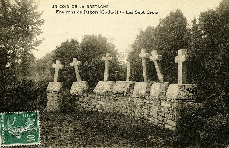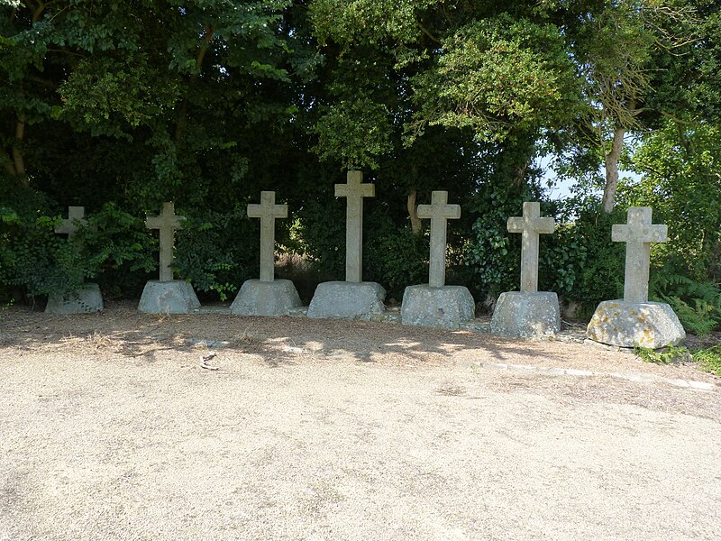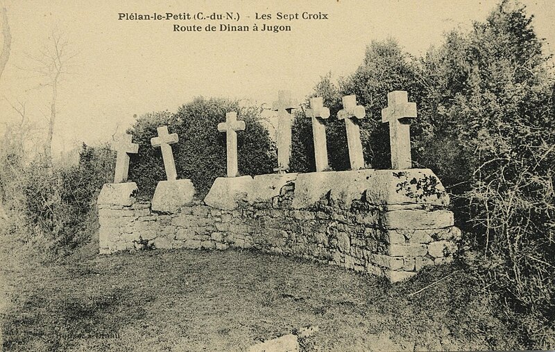 Les Sept croix forment un ensemble de croix monumentales situé à Plélan-le-Petit, sur la route de Jugon-les-Lacs, dans le département des Côtes-d'Armor en Bretagne, France. La tradition les associe aux sept saints de Bretagne du Tro Breiz, tandis que les registres paroissiaux rapportent qu'une cahutte se trouvait autrefois sur ce terrain et que ses sept occupants auraient été assassinés une nuit de Noël. Les croix et leurs bases sont taillées en granit et sont disposées en hémicycle sur un muret en maçonnerie. En 1868, le recteur de la paroisse, l'abbé Morin, les fit déplacer à leur emplacement actuel ; l'évêque de Saint-Brieuc, Augustin David, vint les bénir en 1872. Le site a été inscrit au titre des monuments historiques par arrêté du 21 décembre 1925.