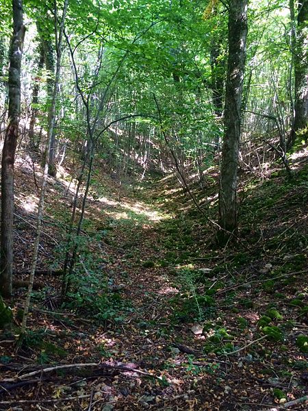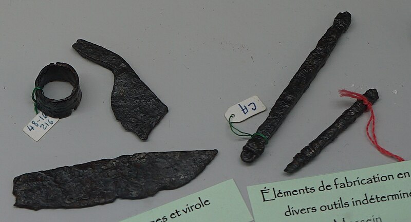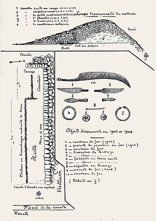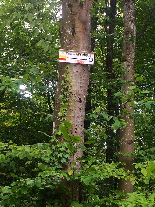 Le site archéologique du Camp d'Affrique se trouve au sud-est du plateau de Haye, à une dizaine de kilomètres de Nancy, dans un bois dominant la vallée de la Moselle d'environ 200 mètres et s'étendant principalement sur les communes de Messein et Ludres. Installé sur le rebord d'une cuesta, le plateau est formé en surface de calcaires à polypiers et à entroques du Bajocien, qui reposent sur des calcaires sableux ; au pied des falaises, des couches de minerai de fer oolithique (minette lorraine) ont été exploitées aux XIXe et début XXe siècles. Le toponyme vient du titre de comte d'Affrique adopté en 1520 par Nicolas de Ludre, seigneur originaire d'une colline appelée Mont Afrique en Bourgogne, qui donna son nom au castrum. Connu dès 1532, le site fut au XVIIIe siècle qualifié à tort de camp romain ; il a fait l'objet de relevés et d'études par plusieurs archéologues au XIXe siècle, puis de fouilles au début du XXe siècle par Jules Beaupré, et de campagnes récentes conduites par Jean-Paul Lagadec dans les années 1980. Les sondages et fouilles des années 1980 ont permis de dater le début de l'occupation au Ve siècle av. J.-C. (Hallstatt D3) et son abandon au cours du IVe siècle av. J.-C. (La Tène B1), le site relevant ainsi du premier âge du Fer. L'enceinte, de type « rebord de plateau », s'appuie sur la falaise et le versant est ; sa forme générale est celle d'un trapèze rectangle à angles arrondis, d'environ 360 mètres de long sur 225 mètres de large, soit près de sept hectares. En bas du versant s'adosse une seconde enceinte rectangulaire d'environ 220 mètres sur 70 mètres, appelée « Vieux Marché », qui couvre près d'1,5 hectare et paraît constituer une annexe de la fortification principale. La défense principale comprend deux remparts successifs, chacun précédé d'un fossé d'environ 2 mètres de profondeur : ces remparts parallèles, hauts d'environ 5 mètres, présentent des modes de construction différents ; le rempart extérieur est formé des déblais issus du fossé, tandis que le rempart intérieur comporte une couche de calcaire calciné recouverte de pierres et de terre, reposant sur un remblai de terre d'environ 1,5 mètre. L'annexe dite « Vieux Marché » est protégée par un rempart d'environ 3 mètres de haut, précédé d'un fossé et prolongé par le mur extérieur de l'enceinte principale ; ce rempart semble construit de blocs calcaires irréguliers, et son entrée ancienne est probablement située du côté est, près d'un puits au pied de la rampe d'accès. Les fouilles ont révélé des vestiges d'habitat surtout dans l'angle nord‑est : six trous de poteau circulaires ou ovalaires (0,15 à 0,30 m de diamètre, 0,15 à 0,40 m de profondeur) délimitent un bâtiment presque rectangulaire d'environ 6 m sur 3 m, avec plusieurs aires de foyer dans sa partie sud. Dans le secteur nord ont été mis au jour deux solins de mur en pierre et en terre, l'un orienté ouest‑est (3 m × 0,75 m) et l'autre perpendiculaire (6 m de long pour 0,70 m de large), ainsi que d'autres foyers dont un de 1 m de diamètre en prolongement d'une file de poteaux. Le mobilier abondant associé à ces structures éclaire les activités des habitants : de nombreuses meules témoignent de la culture des céréales et de la production de farine, les ossements évoquent une économie axée sur l'élevage plutôt que sur la chasse, et la présence d'outils de bois (haches, clous, vrilles) indique des travaux du bois. Les vestiges métallurgiques comprennent fragments de creusets, gouttelettes de bronze et jets de coulée, morceaux de tôle découpée, matière bitumineuse et divers outils, qui attestent l'existence d'un atelier de production et de décoration d'objets de parure en bronze, probablement à l'origine d'une abondance de fibules et d'épingles ; quelques scories issues de la réduction du minerai montrent que le fer était aussi produit localement, même si l'atelier de production n'a pas été retrouvé dans la zone fouillée. De plus, la découverte d'un couteau à lame recourbée suggère le travail de l'osier et la présence de nombreux fuseaux et aiguilles à chas indique une activité textile soutenue ; l'ensemble mobilier est complété par armes, outils, objets de toilette et céramiques. Le site présente un intérêt particulier comme ensemble cohérent de fortifications occupé pendant une période relativement brève et comme témoignage d'un habitat permanent dense et d'un artisanat florissant ; on note en outre la calcination volontaire du rempart, analogue à celle observée sur d'autres sites de hauteur fortifiés de la région. Le Camp d'Affrique a été classé parmi les « sites et monuments de caractère artistique » par Jules Beaupré au début du XXe siècle et est inscrit au titre des monuments historiques depuis 1998.