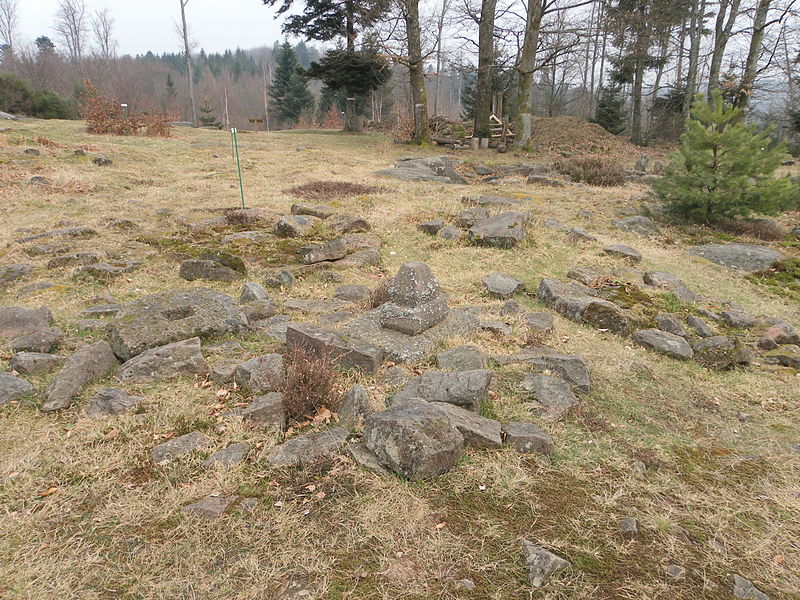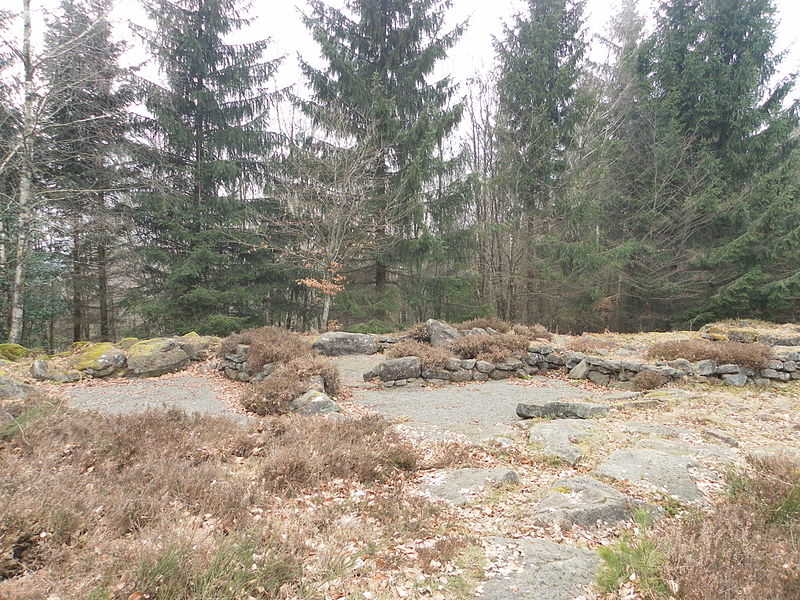 La mise en place de l’occupation est attribuée, d’après la datation de tessons trouvés dans des fondations, à la fin du Ier siècle, vers 80 de notre ère, et l’abandon intervient dans la seconde moitié du IIIe siècle. Les fouilles ont mis au jour environ 80 structures funéraires, six carrières et deux aires cultuelles importantes situées entre la zone d’habitat et la nécropole ; leurs dimensions sont respectivement de 15 × 9 m et 14 × 6 m. Des fragments d’au moins quatre colonnes ornées de cavaliers anguipèdes ont été découverts ; l’un d’entre eux porte un aigle, attribut de Jupiter. Une statue du dieu Taranis‑Jupiter, aujourd’hui au musée lapidaire d’Avignon, le représente tenant une roue, avec un aigle à ses pieds. Plusieurs stèles votives évoqueraient des divinités telles que Rosmerta et Mercure, et un corps de taureau en ronde-bosse, attribut de Mercure, a également été retrouvé. Une borne milliaire découverte en 1869 entre le Petit et le Grand Donon confirme l’existence d’une voie antique reliant le Donon à l’agglomération de Sarrebourg via la Croix‑Guillaume.