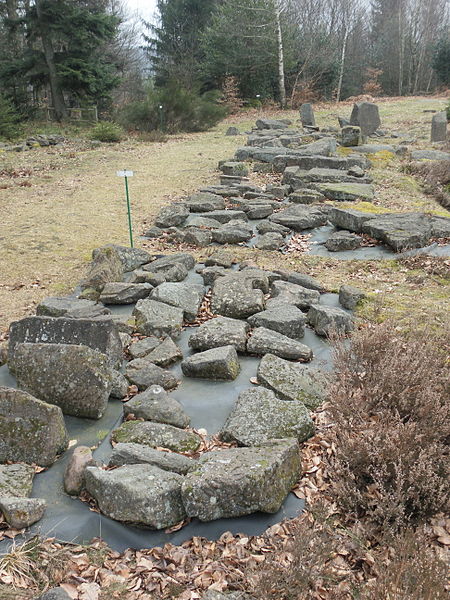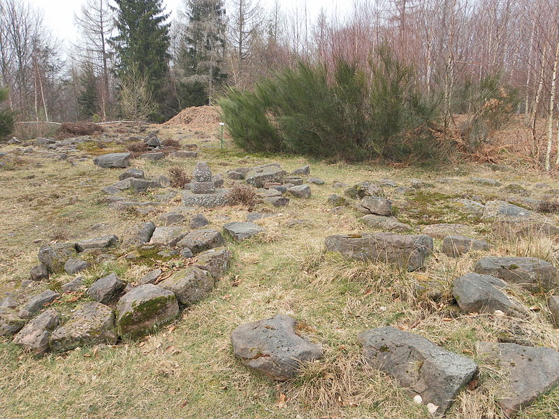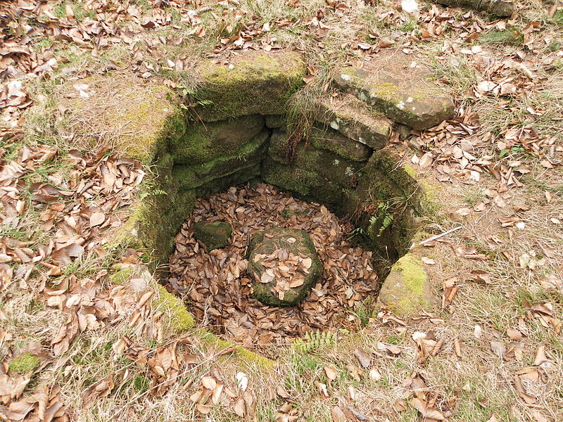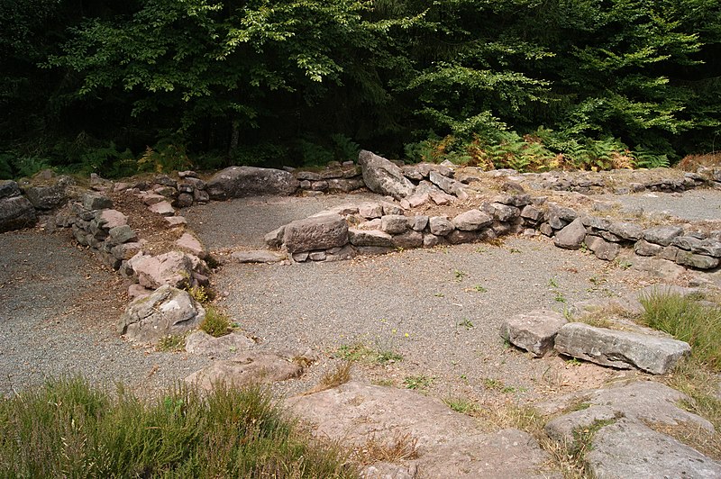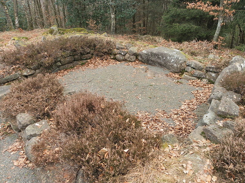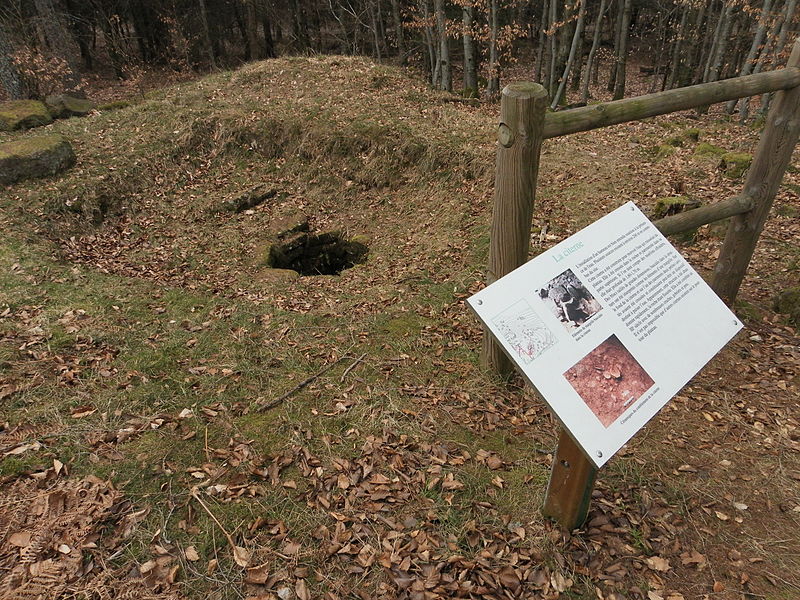 L’habitat comprend un bâtiment principal de 22 × 8 m et quatre autres unités plus modestes, de l’ordre de 5 à 6 m sur 2 à 5 m, qui correspondraient aux logements de carriers et de leurs familles. Une citerne au nord du plateau était vraisemblablement utilisée pour recueillir eaux de pluie et ruissellement, tandis que des terrasses aménagées témoignent d’activités culturales et agro‑pastorales. Dans la nécropole, des urnes en céramique contenant cendres et ossements incinérés sont employées jusqu’à la fin de l’occupation ; les tombes étaient marquées par des cercles ou des enclos de pierres toujours visibles. À partir de la fin du IIe siècle apparaissent, plus rarement, des coffres en bois ou des contenants en grès ; de nombreuses offrandes y ont été retrouvées, notamment haches en fer, fibules en bronze, fusaïoles, anneaux et couteaux, parfois accompagnés de rondes‑bosses représentant la déesse Épona.