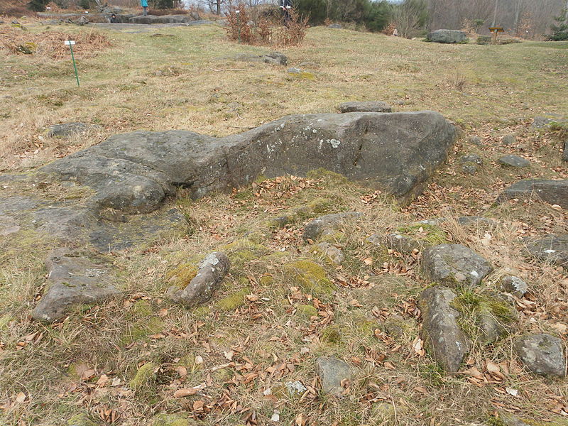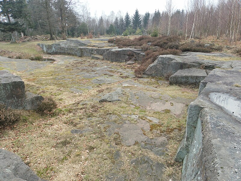 Parmi les stèles, les stèles‑maisons en grès, parfois ornées d’une rouelle ou d’une rosace, sont nombreuses ; on trouve aussi des stèles‑plaques à buste, des stèles à édicule et des urnes en grès. Les carrières antiques du lieu‑dit la Croix‑Guillaume étaient exploitées par des carriers et des tailleurs de pierre résidant sur place, tandis que certains éléments taillés semblent être l’œuvre d’artisans itinérants destinés au commerce extérieur, comme l’atteste une plaque taillée des deux faces pour un mausolée. Les carrières laissent des traces d’exploitation visibles : fronts de taille, tas de déchets, lignes d’emboîtures, traces d’ancrage de machines de levage, blocs en cours de taille, caniveaux d’évacuation et coins en fer.
