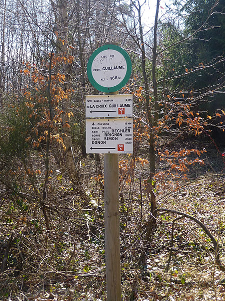 Le site de la Croix-Guillaume concentre sur un même plateau les fonctions d’un hameau antique : habitat, activités économiques, culte et nécropole, illustrant l’occupation des hauteurs vosgiennes à l’époque gallo-romaine (Ier‑IIIe siècle). Il se situe à Saint‑Quirin (Moselle), à une vingtaine de kilomètres de l’agglomération antique de Pons Saravi (Sarrebourg), dernière étape de la voie Langres–Strasbourg avant le col de Saverne. Le plateau d’environ 7 000 m², formé de grès, culmine à 487 m et domine à l’est la vallée de la Sarre rouge et à l’ouest la vallée de la Sarre blanche. Connu des érudits depuis le XVIIIe siècle, le site a fait l’objet de sondages à partir de 1962 puis de fouilles plus récentes entre 1994 et 1999. Le mobilier céramique et métallique, de même que de nombreuses stèles funéraires ou votives et des monuments en ronde-bosse, sont en partie conservés et exposés au musée du pays de Sarrebourg. Le site est inscrit aux monuments historiques depuis le 11 septembre 2003.