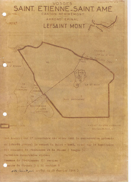 Site archéologique (cad. Saint-Ame B 1 à 7, 762, lieudit le Saint-Mont ; Saint-Etienne-lès-Remiremont C 137 à 143, lieudit le Saint-Mont) : inscription par arrêté du 7 juillet 1995