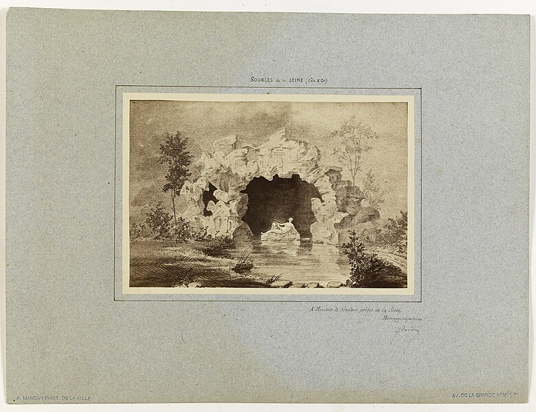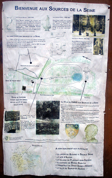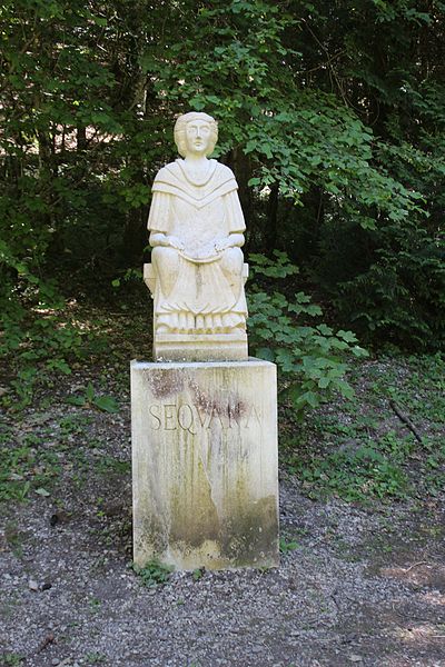 À l'époque antique, le lieu dépendait du territoire des Lingons et, à partir de la fin de La Tène, a accueilli un sanctuaire où furent édifiés deux temples, une enceinte à colonnes et d'autres structures centrées sur la piscine et la source. Entre le Ier et la fin du IVe siècle, le sanctuaire gallo-romain était consacré à la déesse Sequana et constituait un lieu de pèlerinage; les fouilles ont mis au jour plusieurs centaines d'ex-voto. Dès la seconde moitié du XVIIIe siècle et au début du XIXe, des objets gallo-romains ont été découverts dans les environs, notamment une galère en bronze signalée en 1763, un trident mentionné en 1787 et divers débris, médailles et fragments sculptés retrouvés en 1822 lors de la démolition d'une petite chapelle. Ces découvertes ont suscité l'intervention de la Commission des antiquités de la Côte-d'Or et une première campagne de fouilles dirigée par Chaussier-Morisot entre 1836 et 1843 a permis de mettre au jour les fondations du sanctuaire et une centaine d'ex-voto. L'intérêt pour le site a conduit la ville de Paris à acquérir le terrain qui entoure la source en 1864 et à y aménager une grotte artificielle en 1865 pour la protéger.