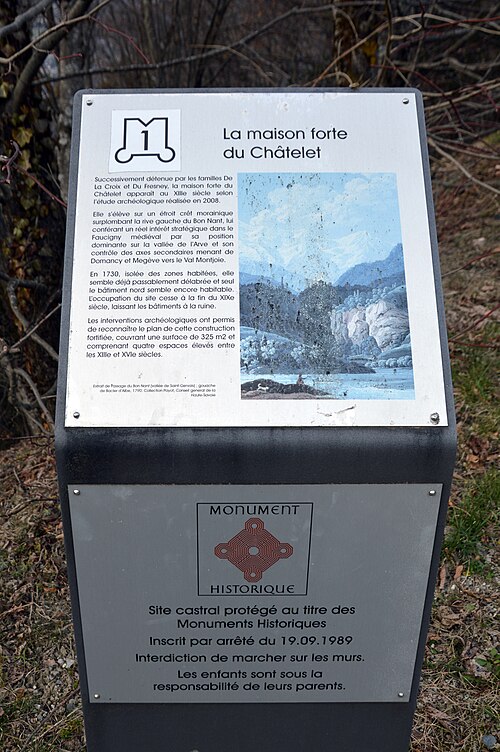 Le site castral du Châtelet, situé à Saint-Gervais-les-Bains en Haute-Savoie, correspond aux vestiges d'une maison forte aujourd'hui en ruine qui fut le centre de la seigneurie du Châtelet. Il est inscrit au titre des monuments historiques par arrêté du 19 septembre 1989. Les vestiges se dressent sur la rive gauche, sur un mamelon dominant les gorges de Bonnant, presque en face de la maison forte du Fresnay. La seigneurie appartenait à la famille du Fresnay, attestée dès la fin du XVe siècle. Au début du XVIIe siècle, Jean-Baptiste du Fresnay porta les titres de seigneur de la Comtesse et du Châtelet, titres partagés ensuite par son fils Claude-Melchior. Ces titres passèrent ensuite à une branche cadette dont le petit-fils, François-Nicolas du Fresnay, réunit à nouveau les deux seigneuries. Il ne subsiste que les vestiges de deux murs d'enceinte : l'un, qui ceint le pied de la colline, est de hauteur modeste et à demi enfoui ; l'autre, plus restreint mais plus élevé, couronne le sommet de la butte. Le site a été fouillé en 2008 en vue d'une mise en valeur. Une notice consacrée au Châtelet figure dans l'ouvrage de Dominique Dilphy, Les châteaux et maisons fortes du Pays du Mont-Blanc (p. 26).